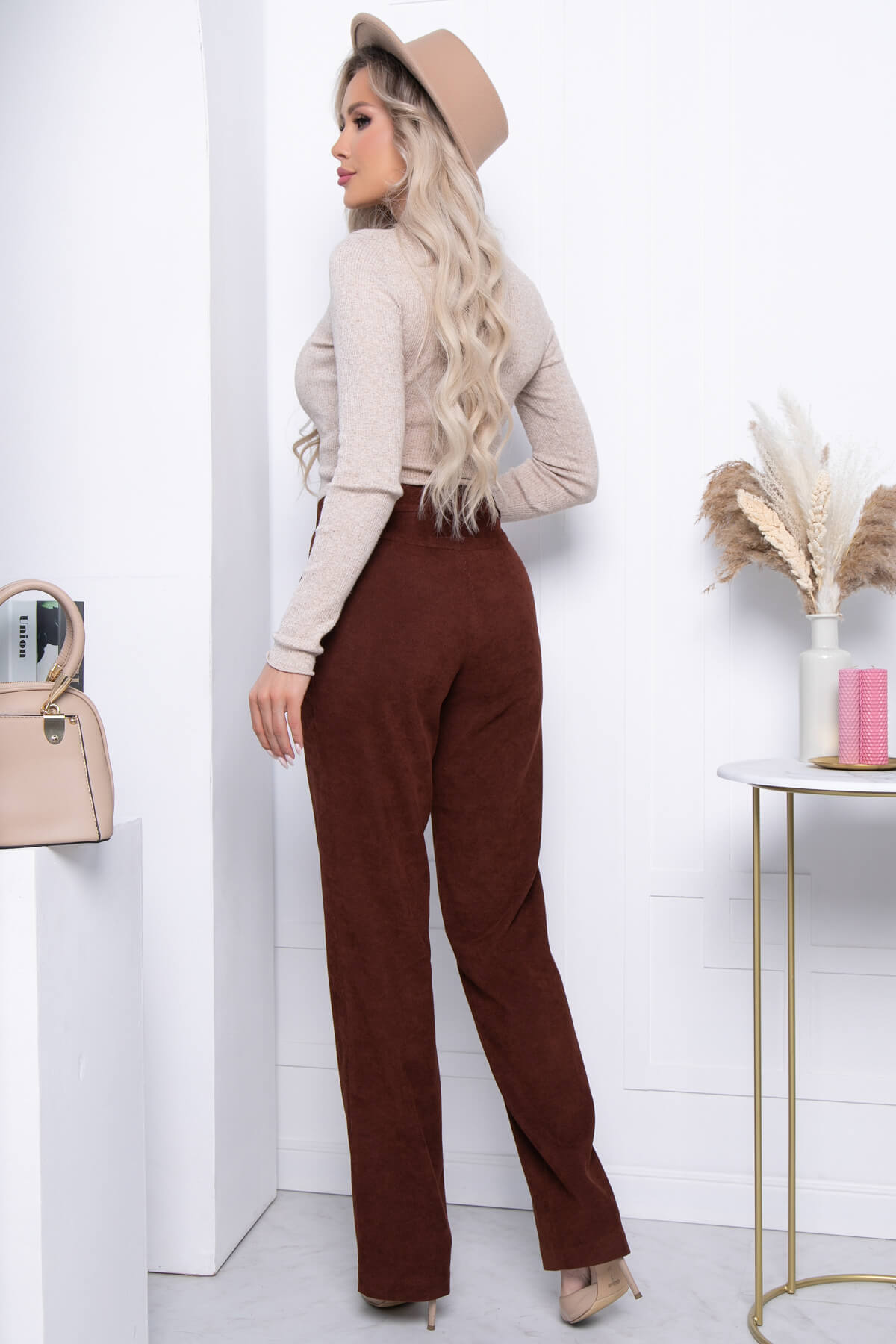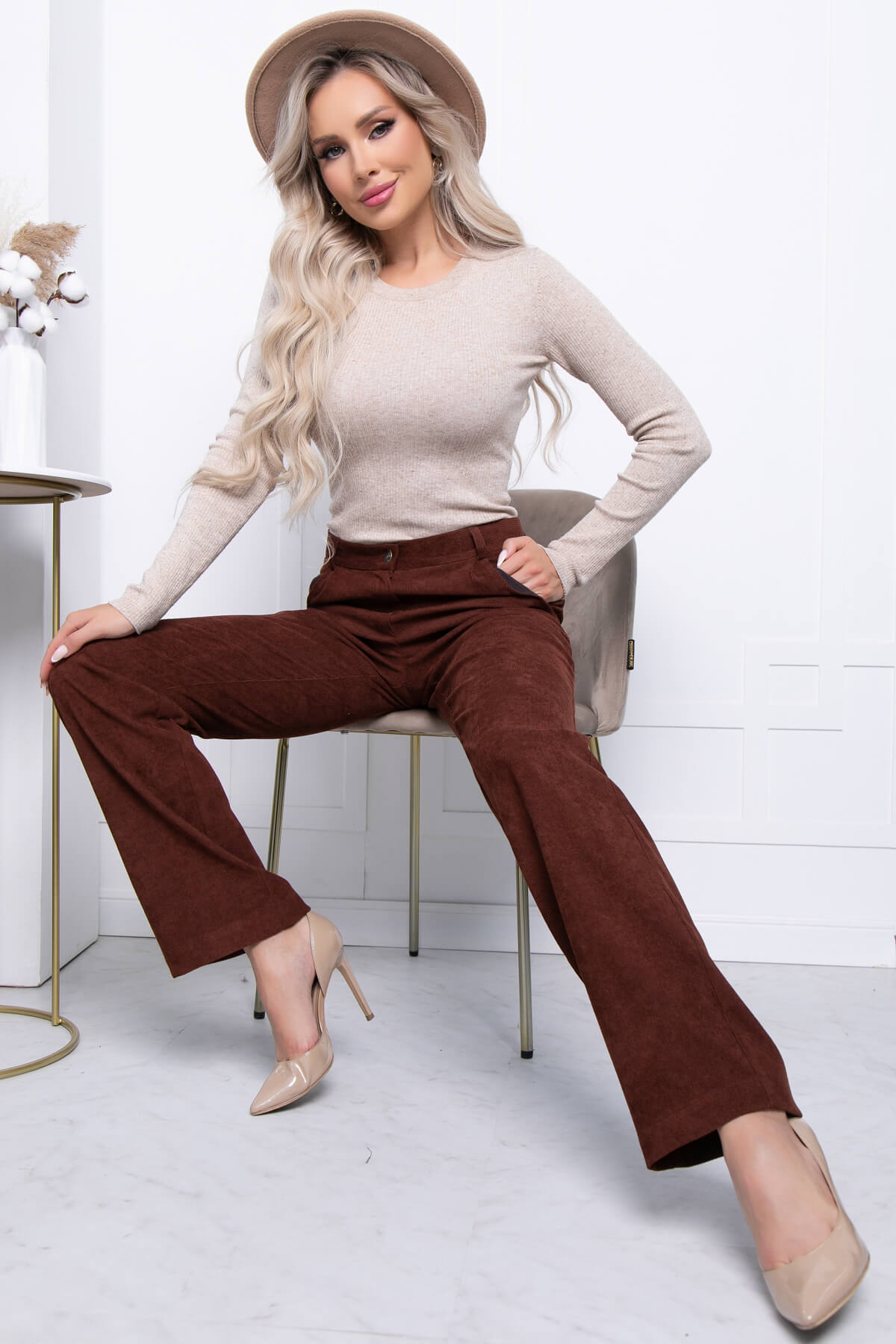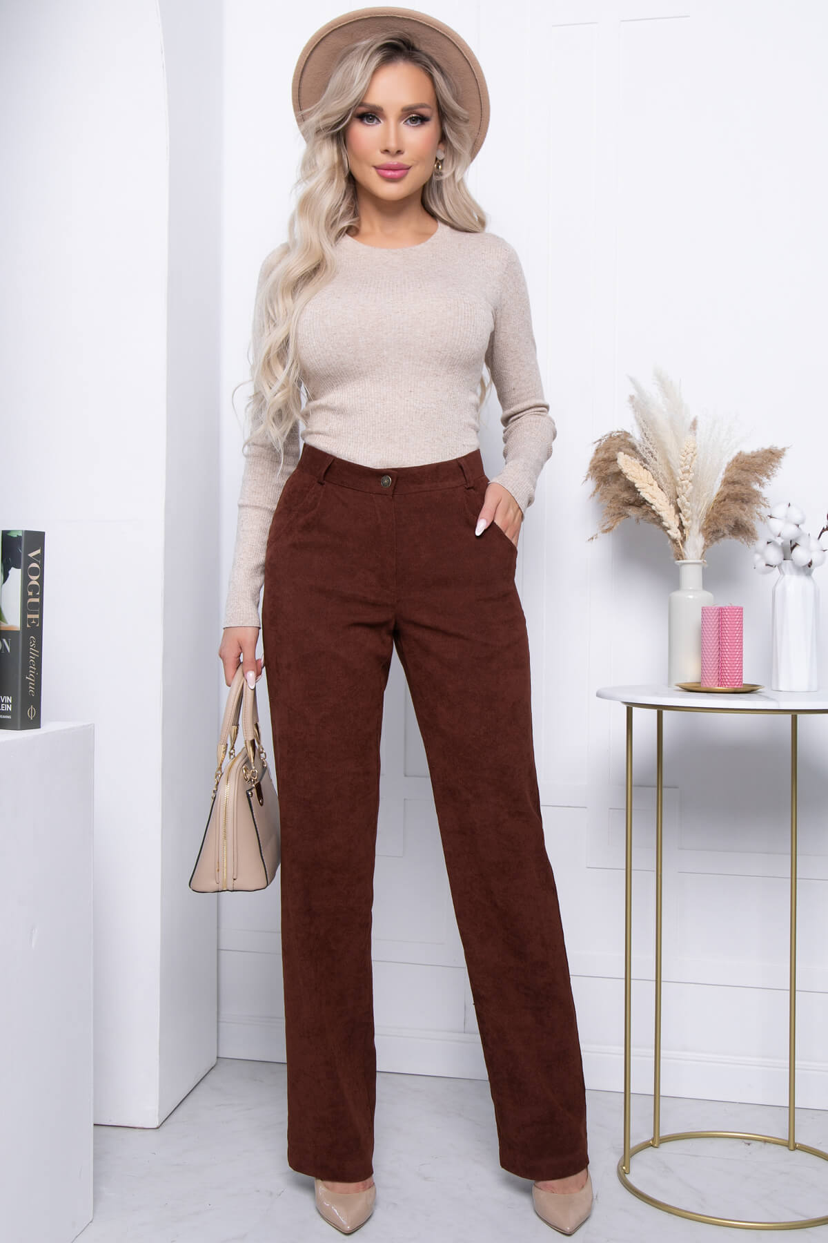 Практичные и комфортные брюки из вельвета. Модель выполнена в классическом варианте - прямой крой, притачной пояс со шлёвками для ремня. Есть карманы. Такой вариант брюк прекрасно подойдёт для работы в офисе или просто на каждый день.