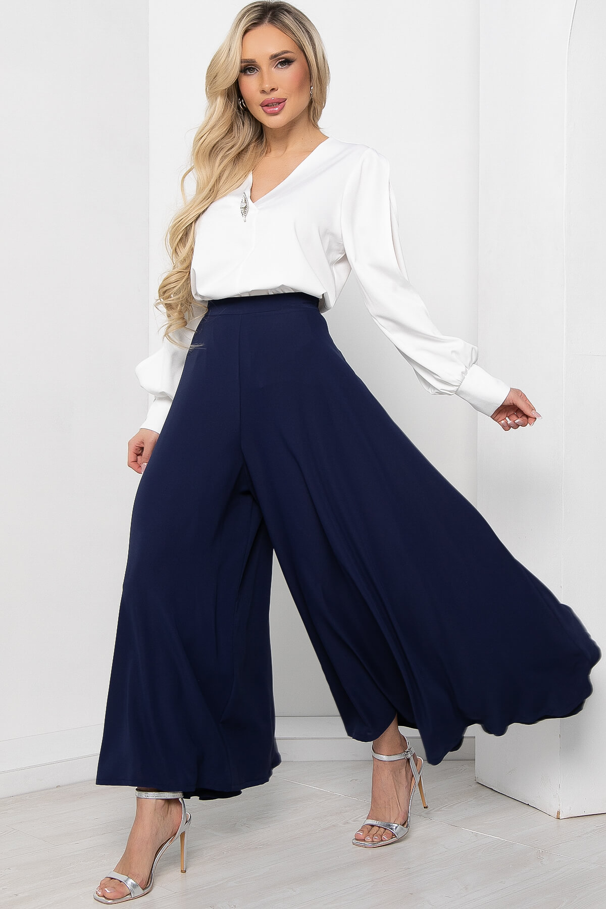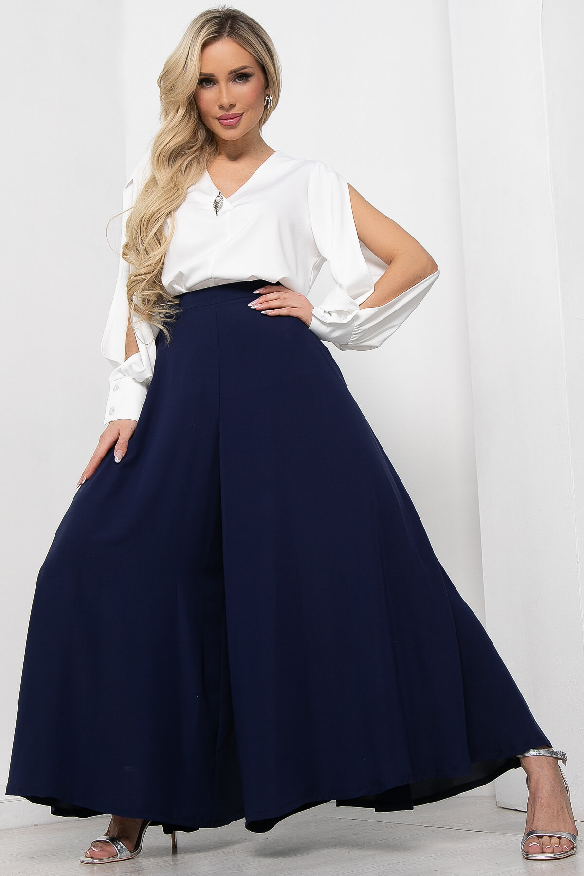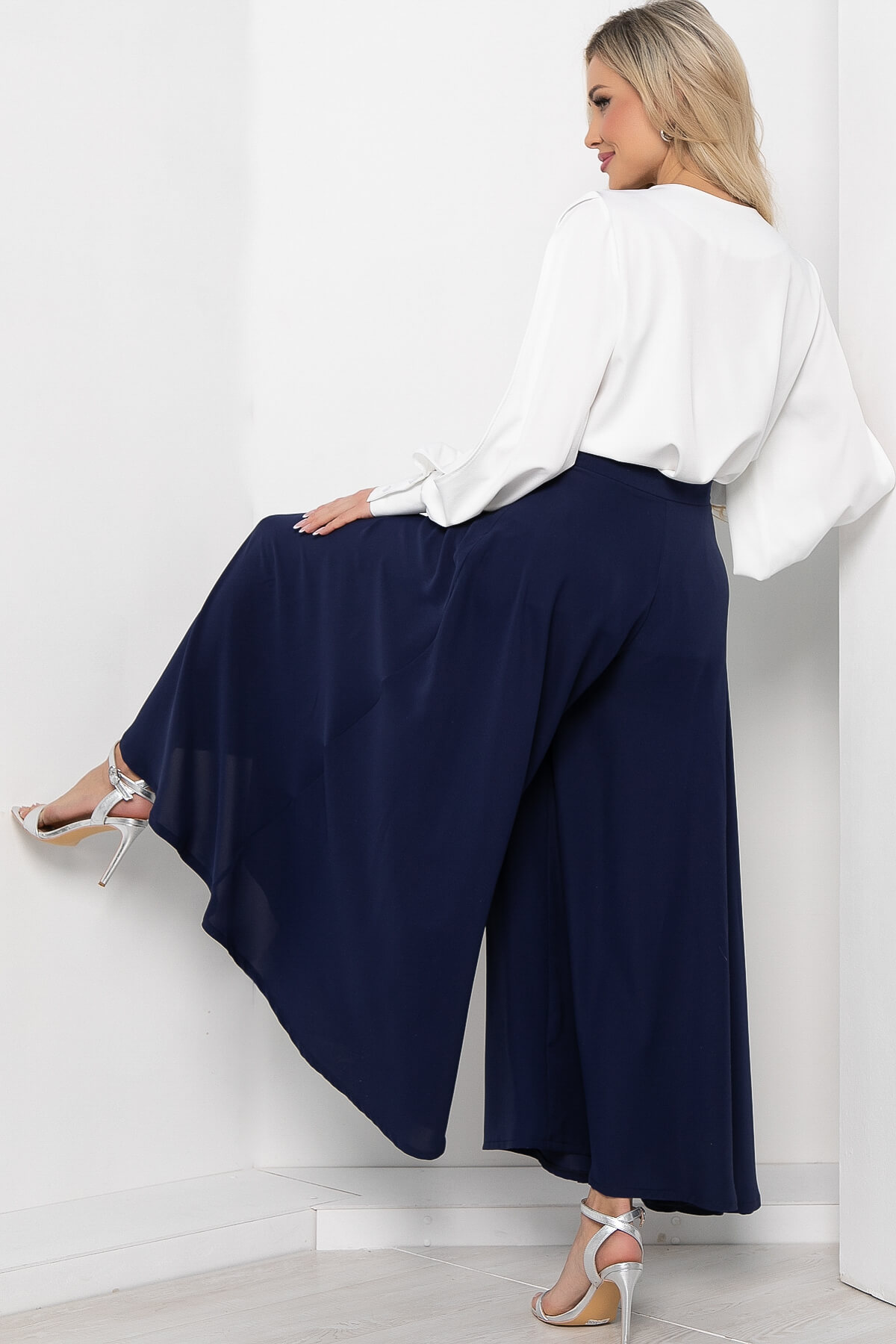 Оригинальные и стильные юбка-брюки для эффектного появления. Такая модель брюк идеальна для женщин любого возраста. Струящаяся ткань брюк визуально вытягивают и стройнят фигуру. Также брюки-юбка в сочетании с блузой, топом или водолазкой подойдут для повседневной носки и прогулок, а если надеть под них обувь на каблуке, то брюки превращаются в неотъемлемую часть вечернего образа. Талия на притачном поясе. Брюки оснащены потайной молнией по боковому шву.