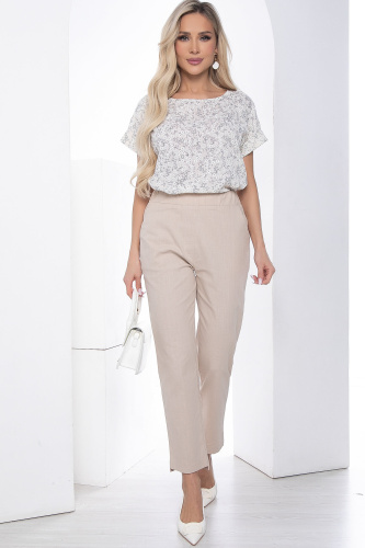 Прямые летние брюки слегка укороченной длинны. Подойдут для повседневного образа. По талии пояс на резинке, сзади кокетка и 2 накладных кармана. По переду имитация застежки и 2 потайных кармана.