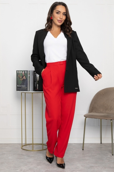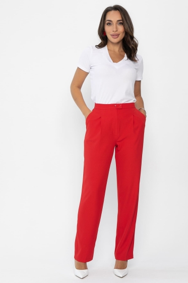 Классические брюки с высокой талией — это must-have для современной женщины. Они идеально подходят как для деловых встреч, так и для повседневных прогулок. Высокая посадка подчеркивает талию, создавая изящный силуэт, а прямой крой добавляет строгости и стиля. Брюки оснащены удобным поясом с резинкой сзади, что обеспечивает идеальную посадку и комфорт. Боковые карманы и застежка на молнию с двумя пуговицами делают их функциональными и практичными.