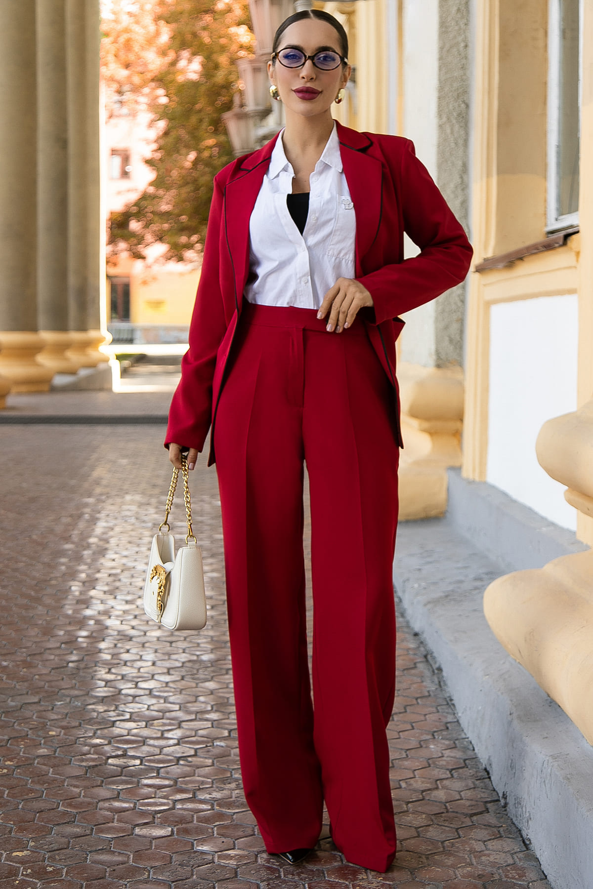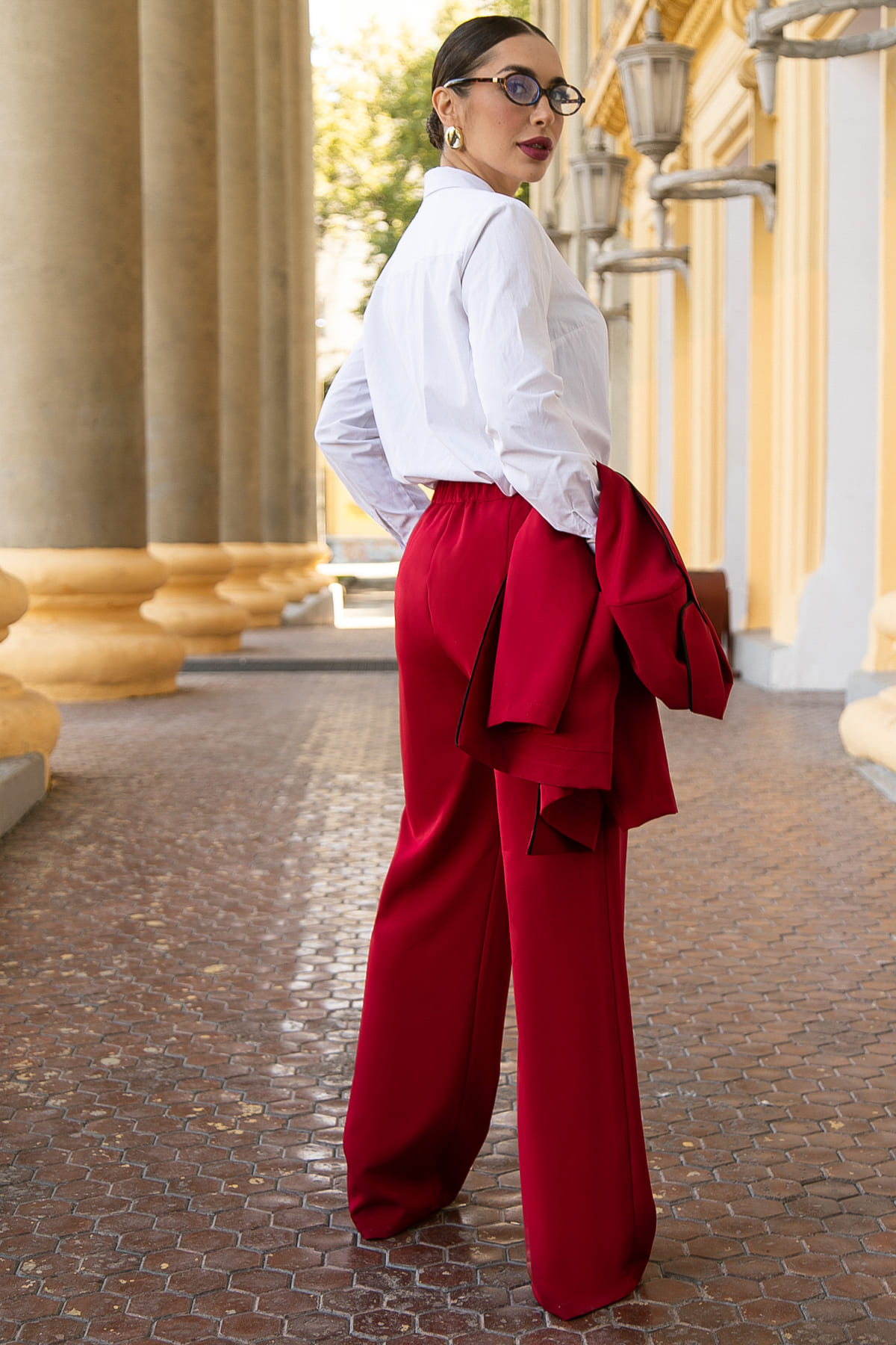 Элегантные классические брюки в бордовом цвете – основа вашего стильного гардероба! Высокая посадка выгодно подчеркивает талию, создавая женственный и утонченный силуэт. Для идеальной посадки по фигуре предусмотрена резинка по спинке пояса. Заутюженные стрелки визуально удлиняют ноги и придают брюкам строгий классический вид. Надежная застежка на молнию и пуговицу обеспечивает комфорт и уверенность в течение дня. Прекрасно вписываются в офисный дресс-код, идеально подходят для важных деловых встреч и добавляют элегантности вашему образу на особых мероприятиях.