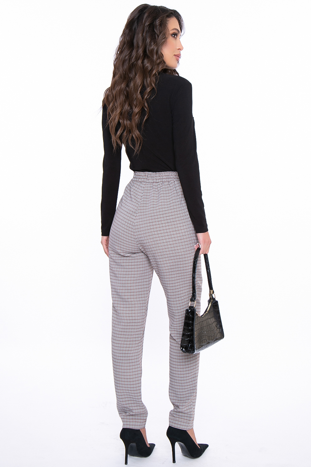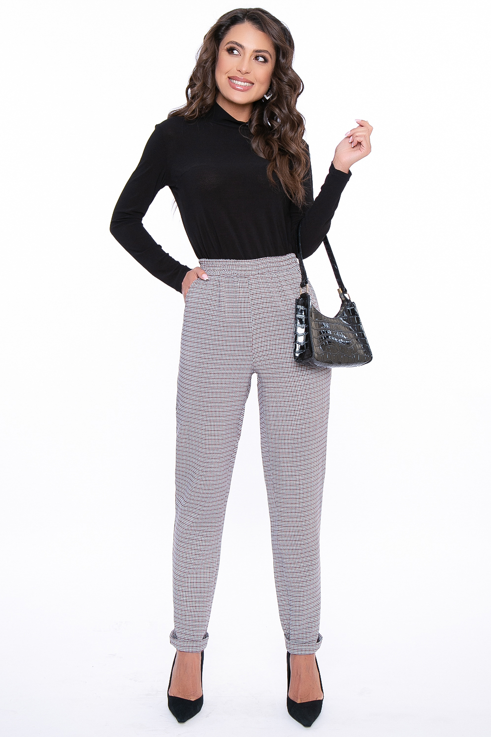 Стильные брюки в мелкую клетку смотрятся современно, но при этом благодаря классическому фасону подойдут для офисного образа;