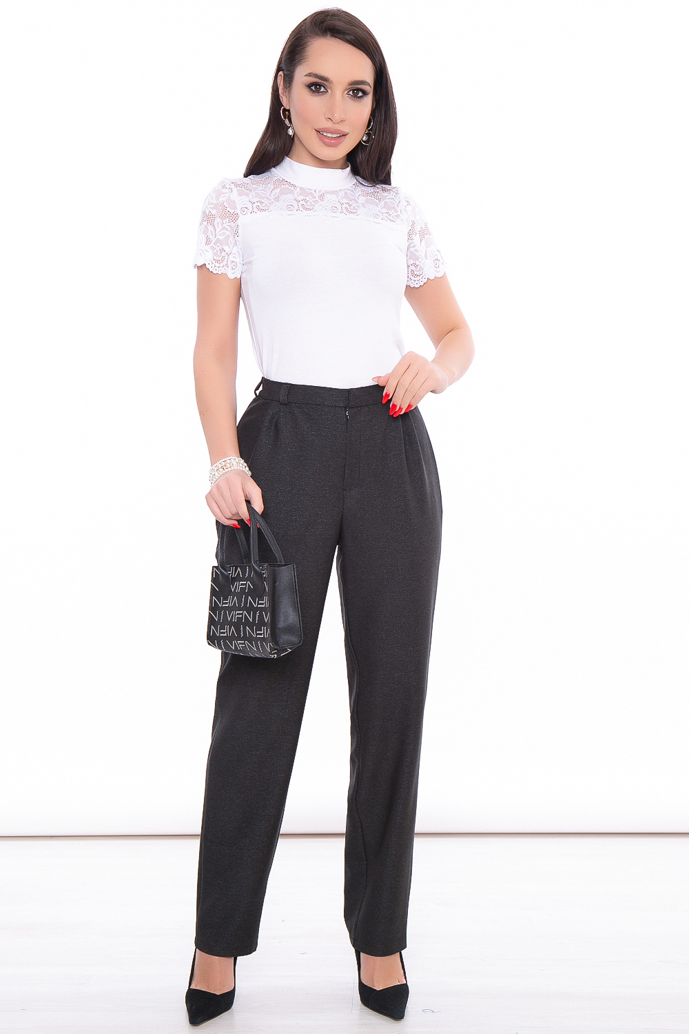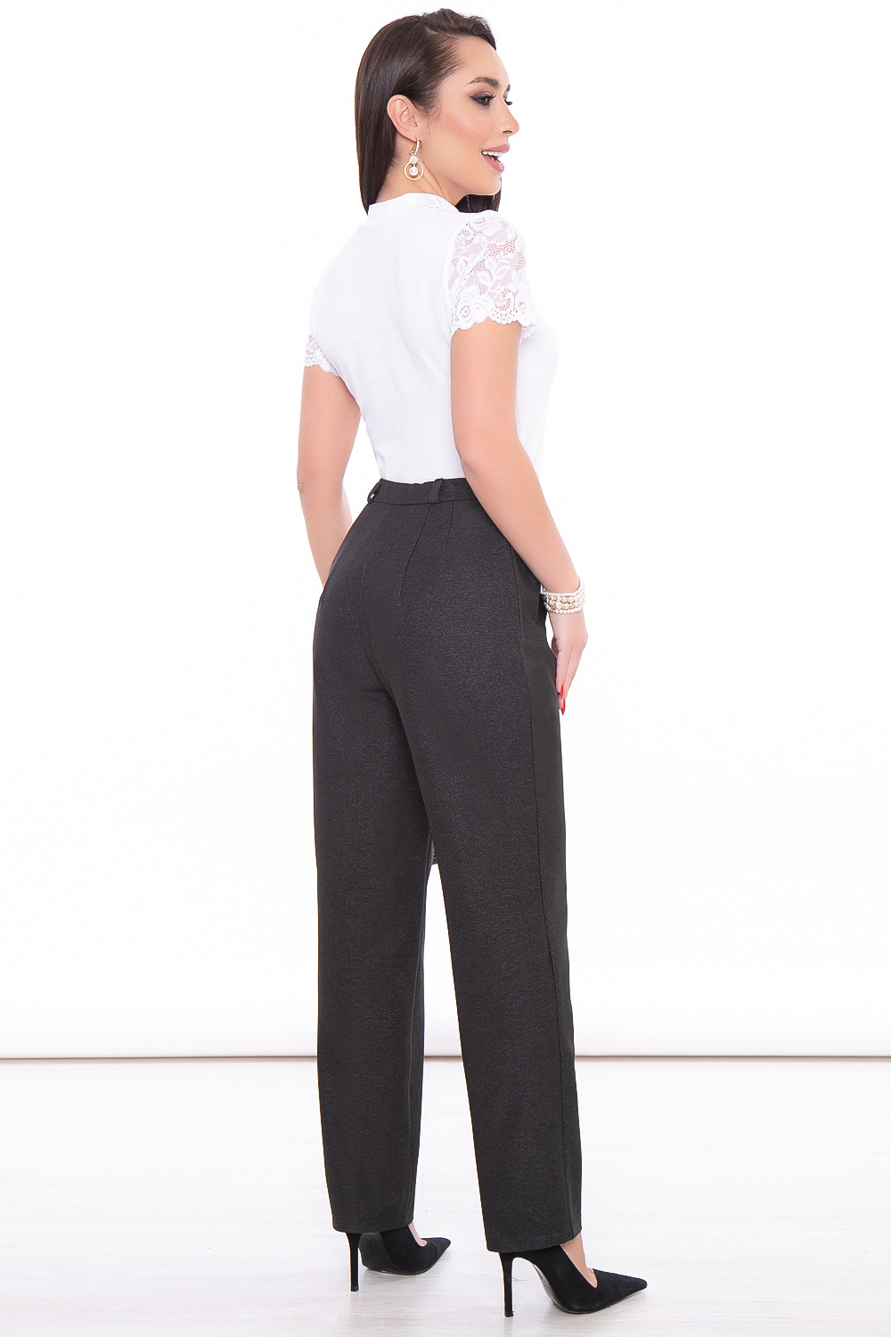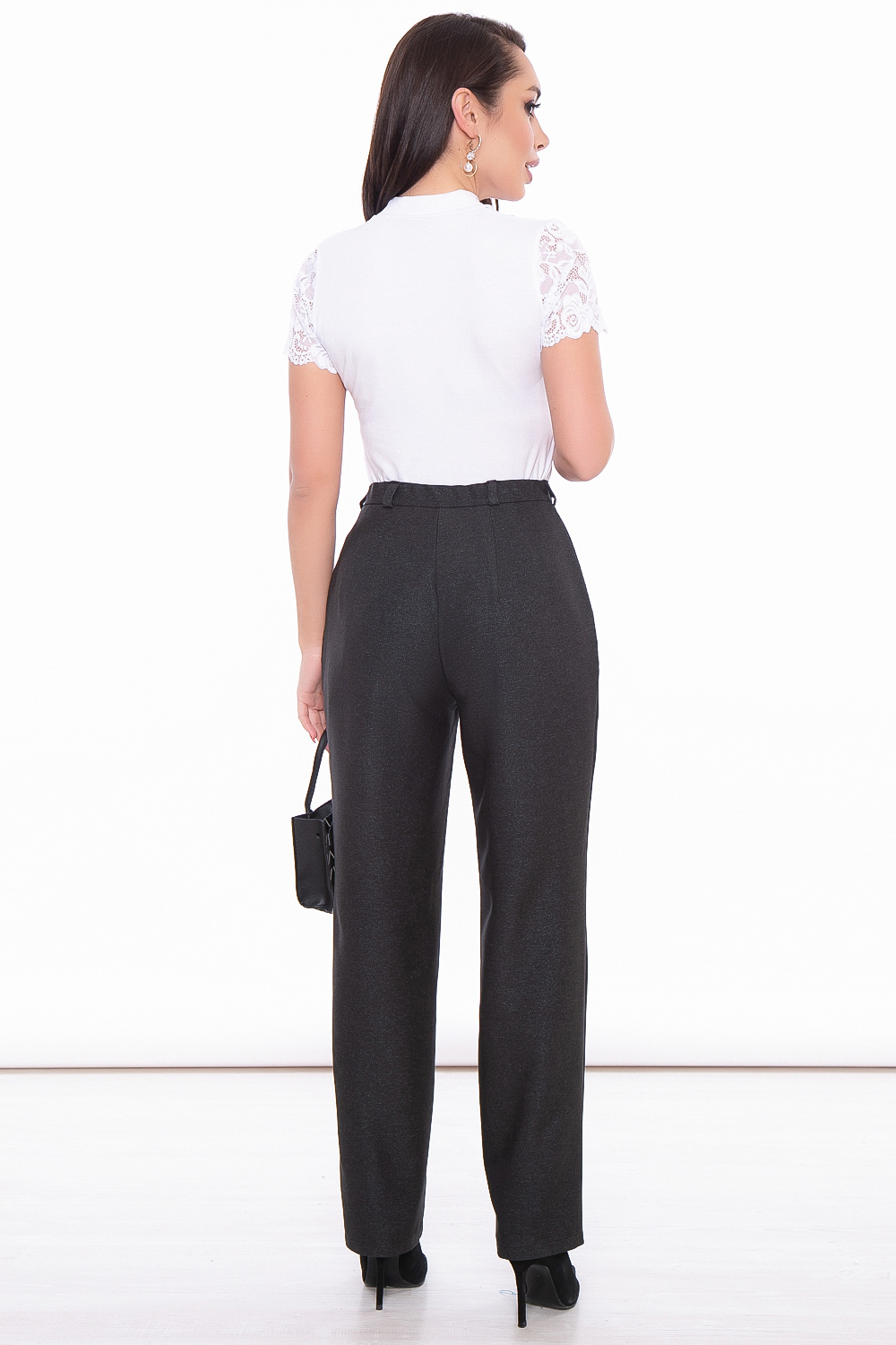 Классический дизайн брюк позволит создать стильный офисный образ. Можно сочетать с блузой, водолазкой или лонгсливом, а также