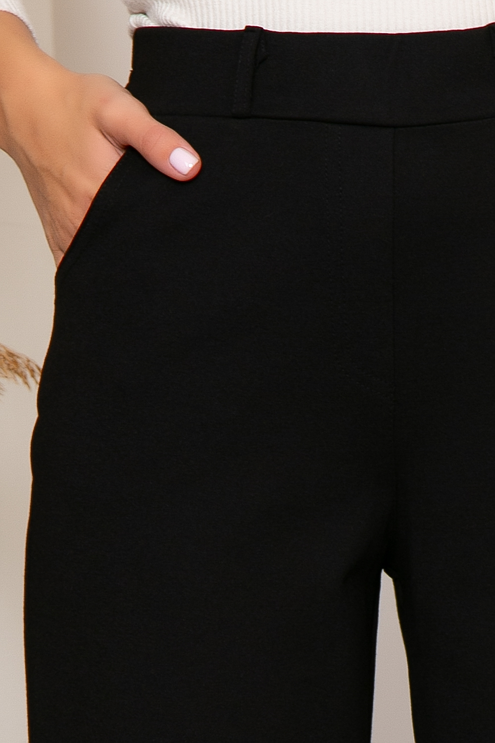 Брюки палаццо из плотной костюмной ткани прекрасно подойдут для стильного делового образа. Классический цвет позволяет комбинировать их с разнообразным по цвету верхом. Пояс по спинке оснащен резинкой, что обеспечивает комфортную посадку. Есть шлёвки для ремня.