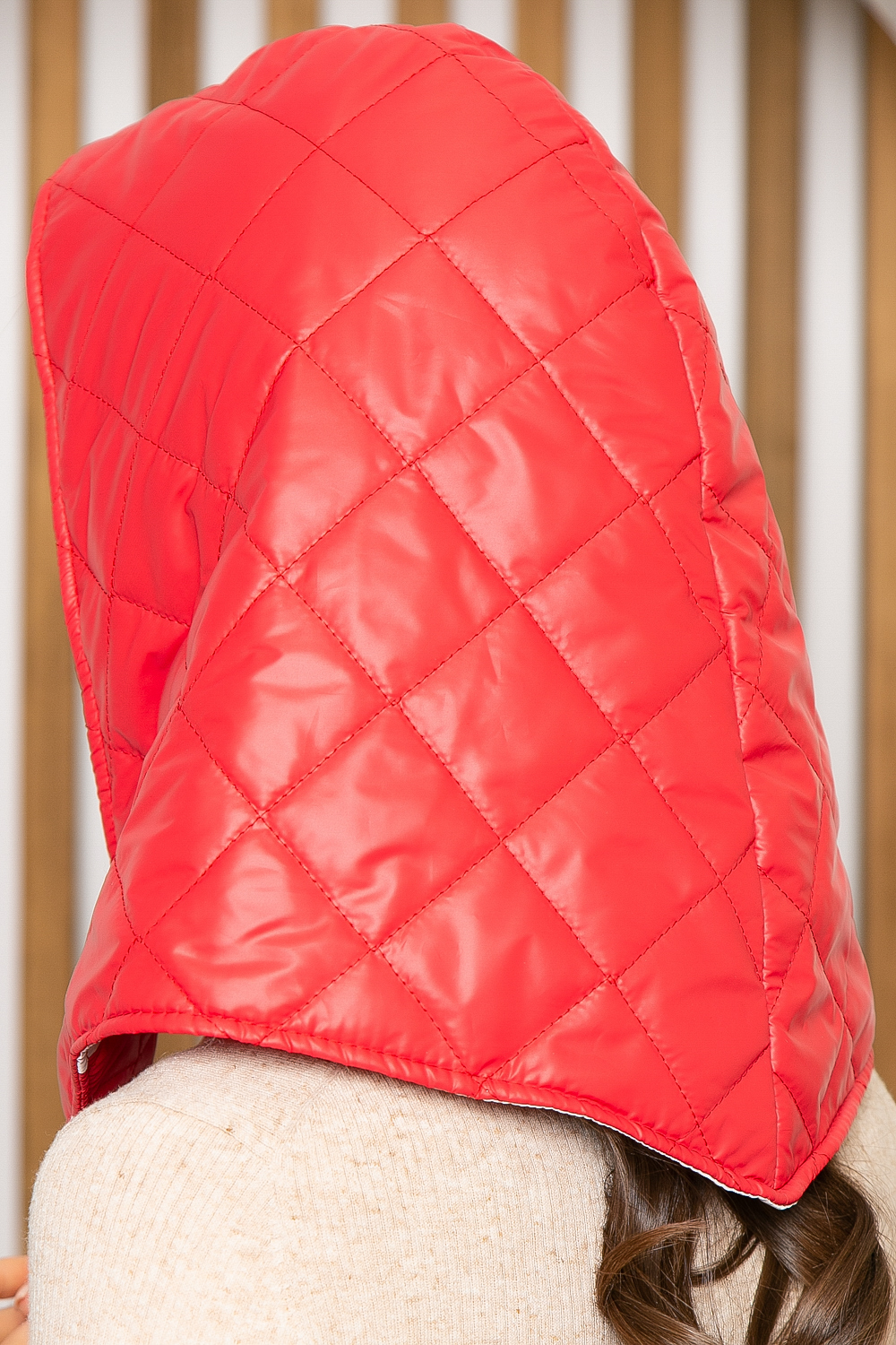 Стёганая косынка, утепленная флисовой тканью. Невероятно удобный аксессуар, ведь в отличии от обычной косынки, данная модель оснащена кнопкой и поэтому не будет развязываться и вызывать дискомфорт при носке. Стёганая косынка с лёгкостью заменит шапку или капюшон.