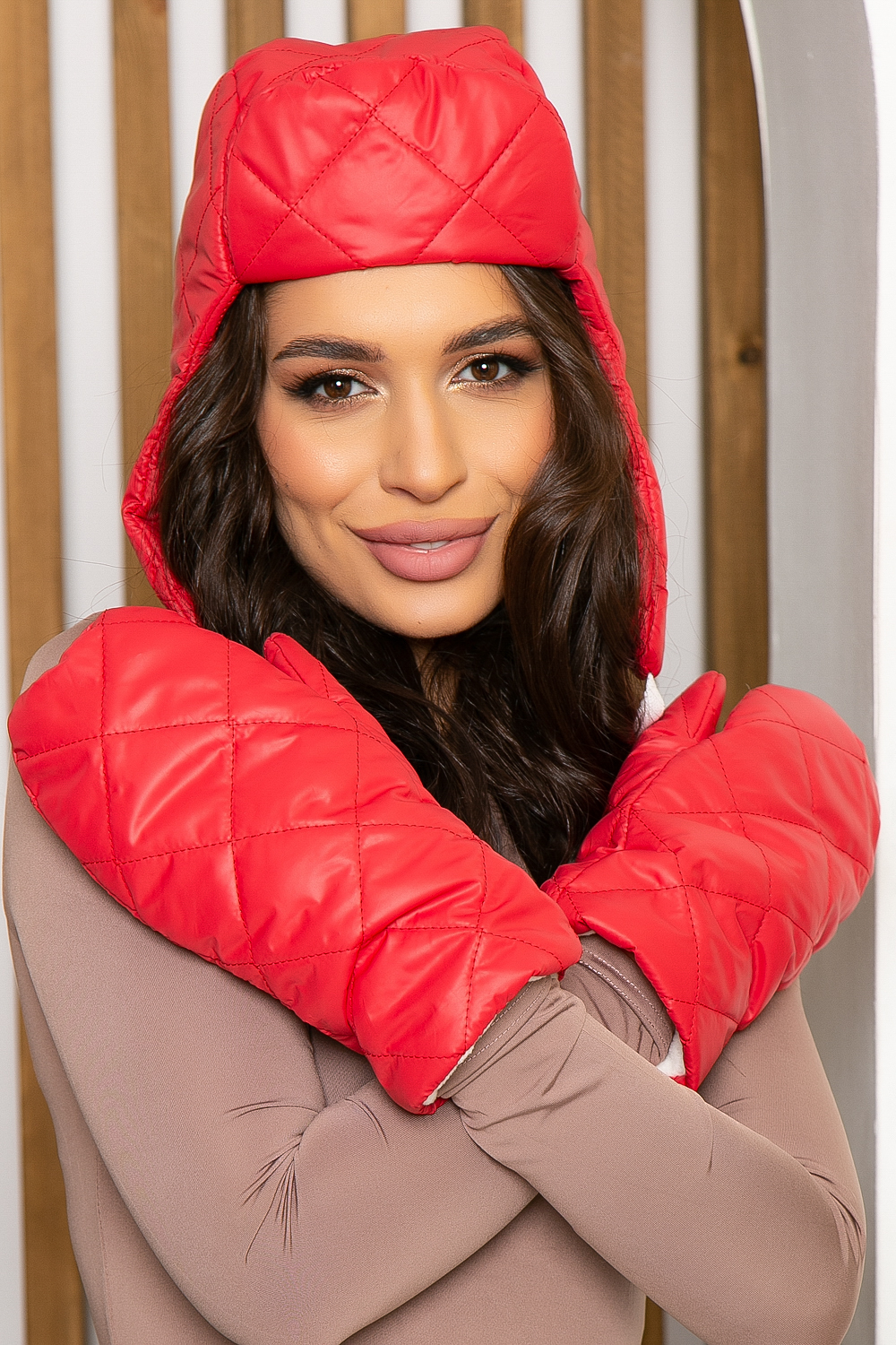 Удобный и стильный тёплый комплект, состоящий из двух предметов: шапки-ушанки и рукавиц. Внутри изделия утеплены флисом. Комплект практически невесомый.