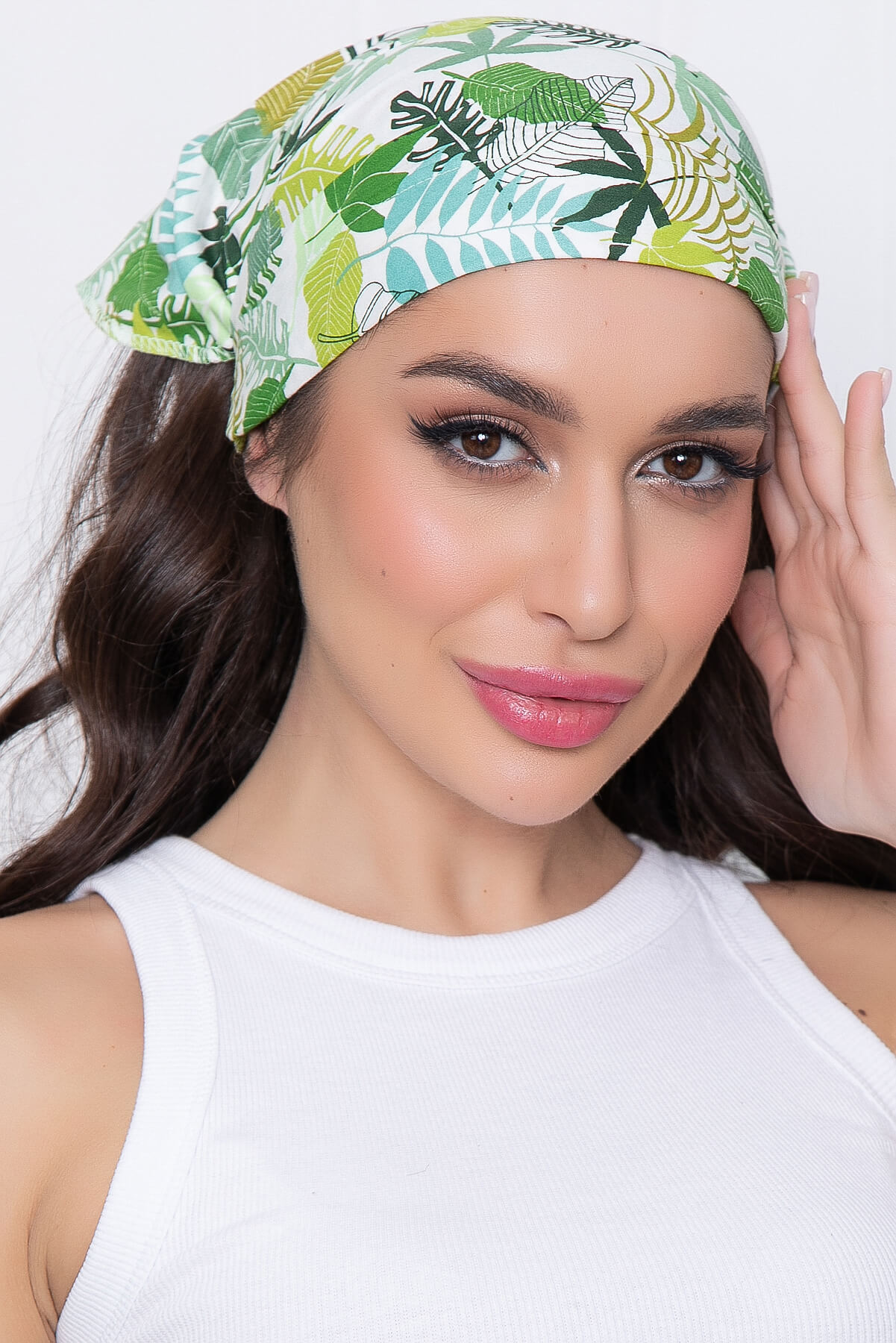Косынка на резинке (зеленая монстера) КР5