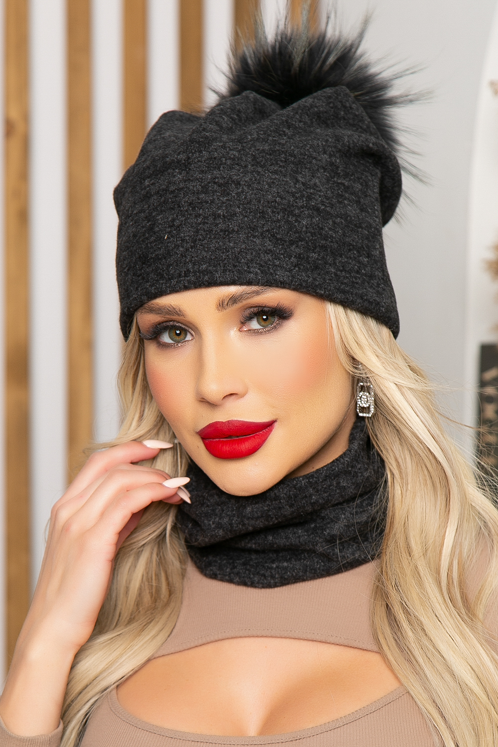 Комплект шапка и снуд (темно-серый) ШПС7