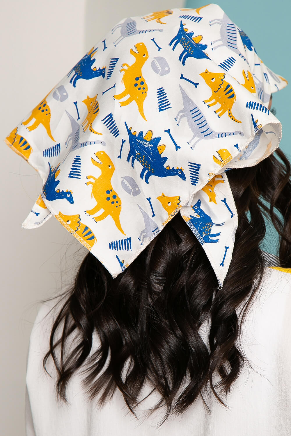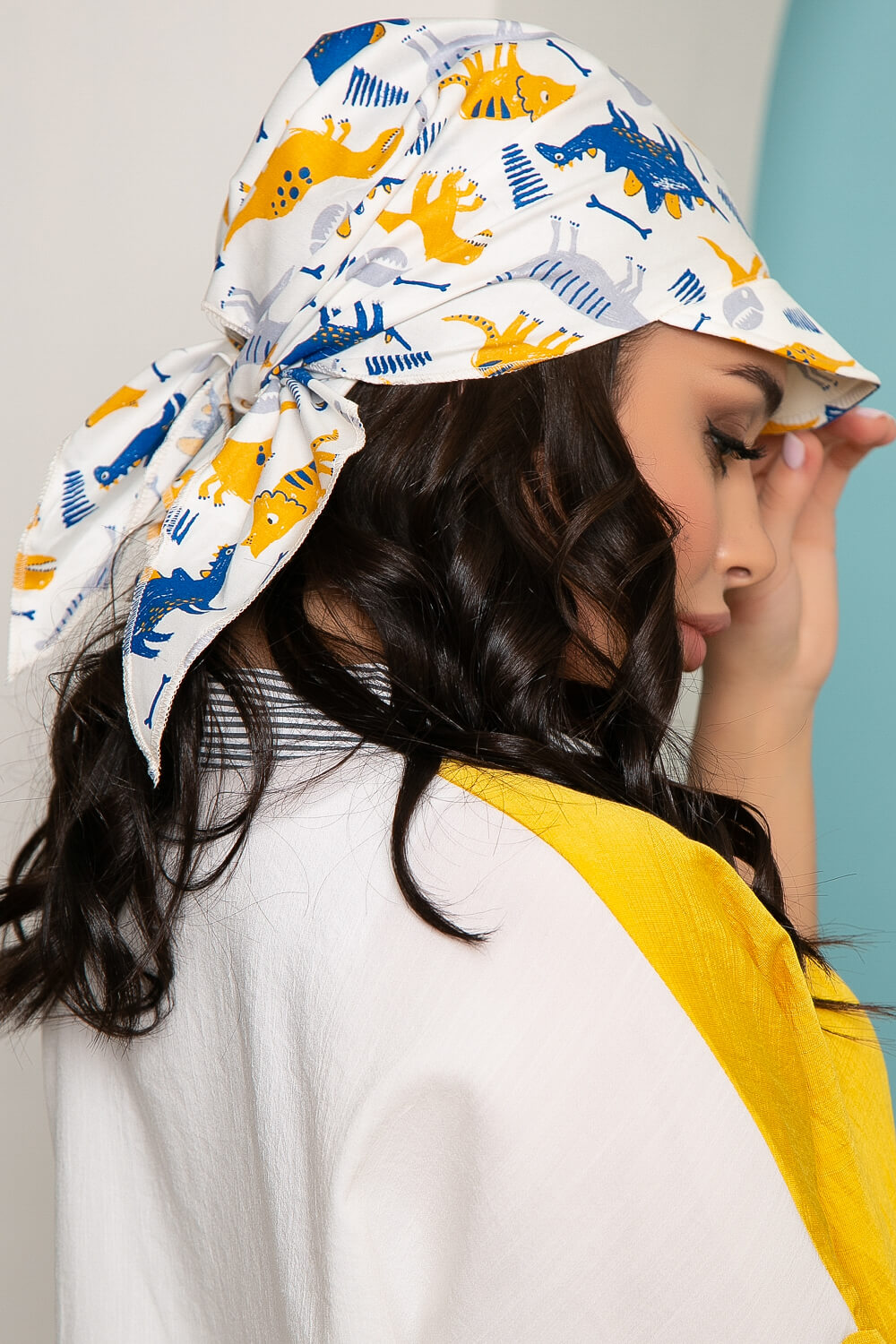 Косынка с козырьком (динозаврики, белая) КК10