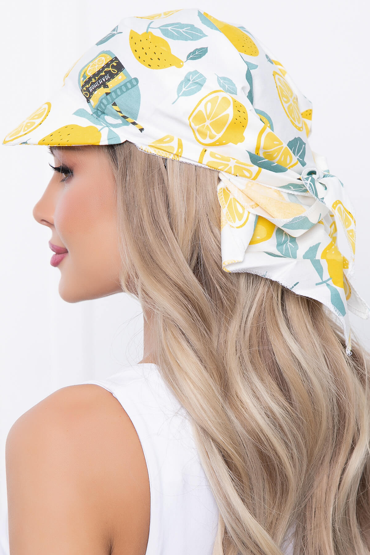 Косынка с козырьком (лимончики, белая) КК15