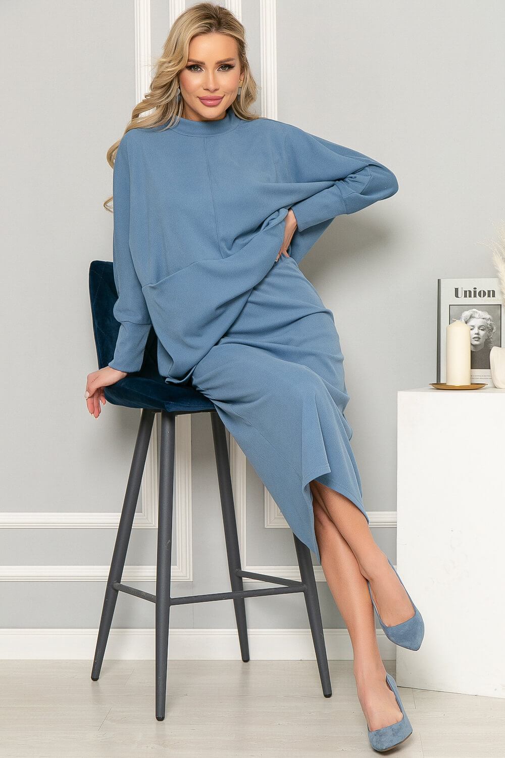 Костюм-двойка, состоящий из юбки на резинке и джемпера свободного кроя. Очень удобный комплект для создания стильного повседневного образа. Удлиненный джемпер прямого кроя имеет длинный рукав. Пройма рукава - "Летучая мышь". Юбка прямого кроя, по талии на комфортной резинке.