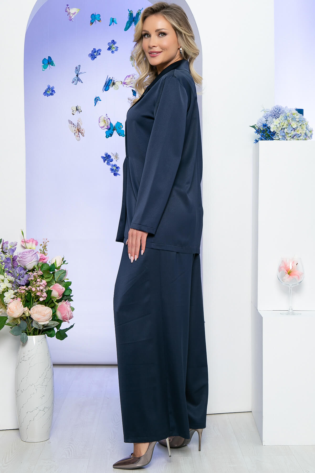 Элегантный брючный костюм, который создаст утончённый деловой образ. Универсальный двубортный жакет прямого кроя сделает Ваш образ более деловым. Рукав жакета втачной, длинный. Брюки свободного кроя с защипами по переди, талия на резинке.