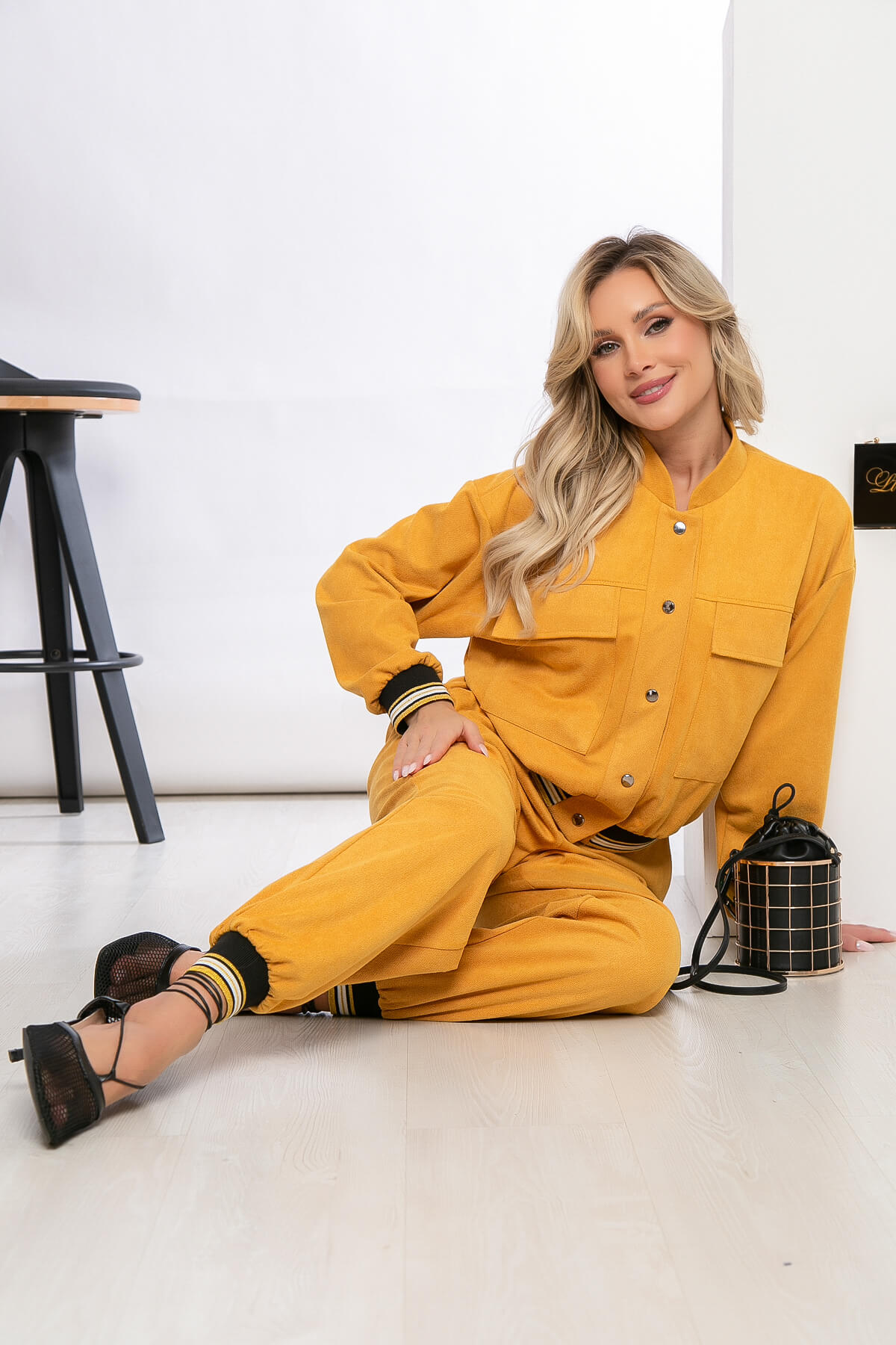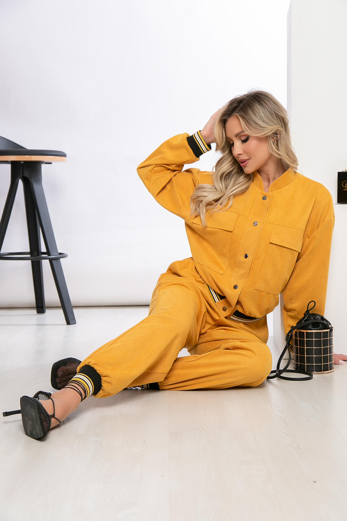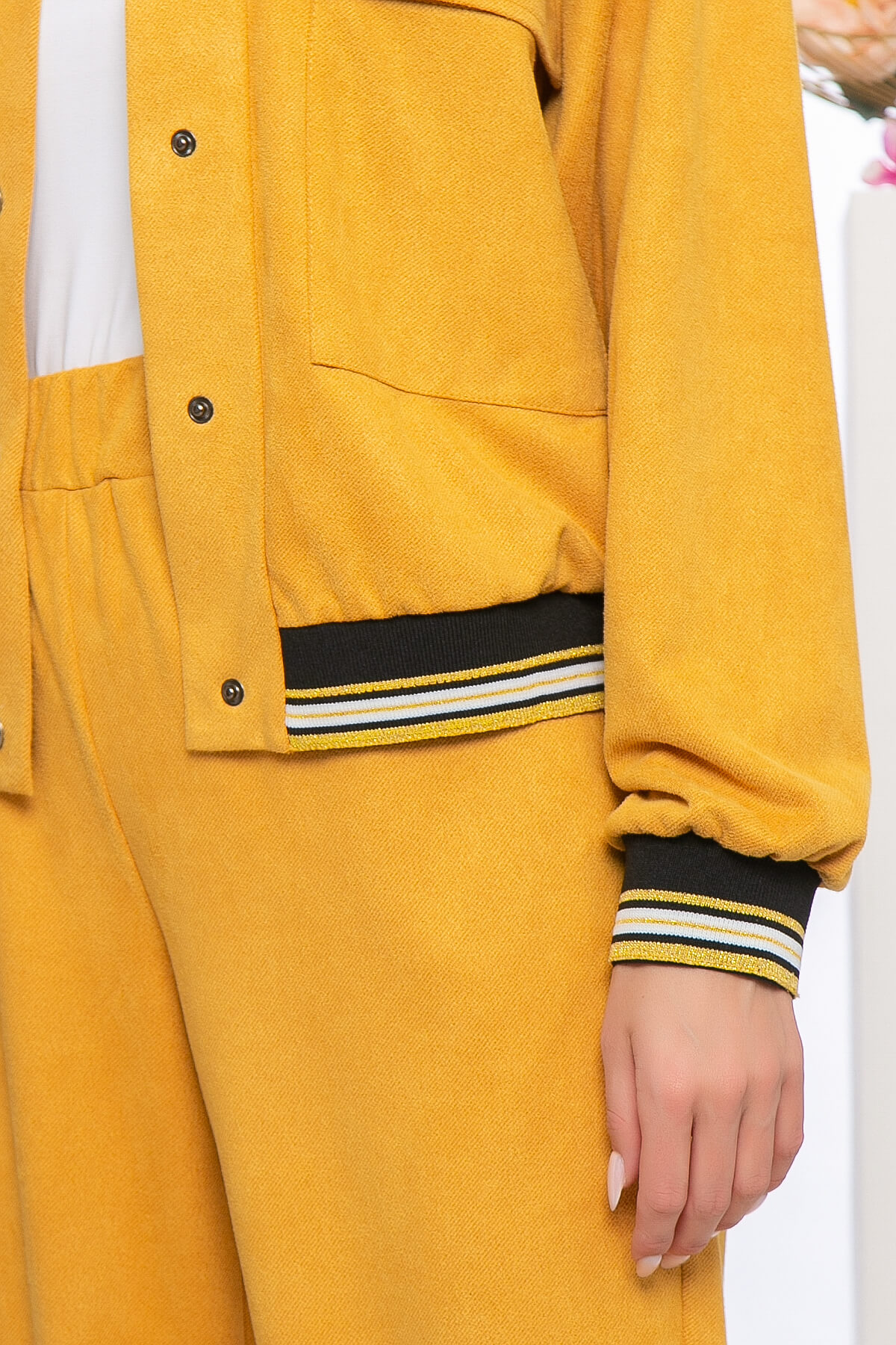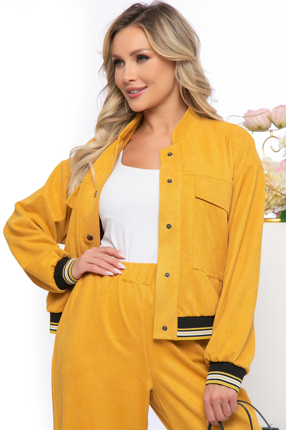 Яркий костюм - это отличный повседневный вариант. Отлично подойдет в прохладную погоду. В нем будет уютно и тепло. Рукав втачной, линии плеча спущены. Комфортная горловина - стойка.