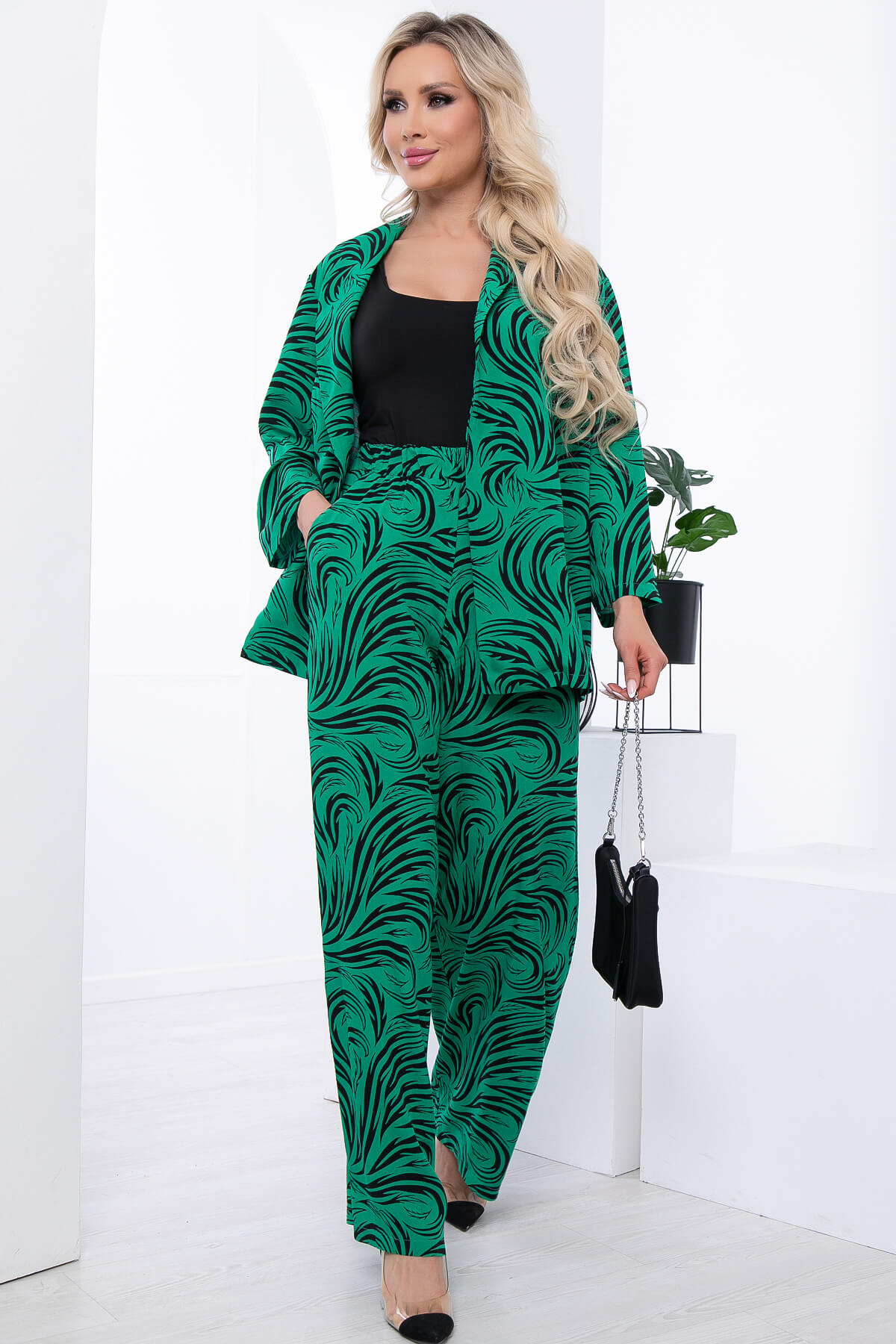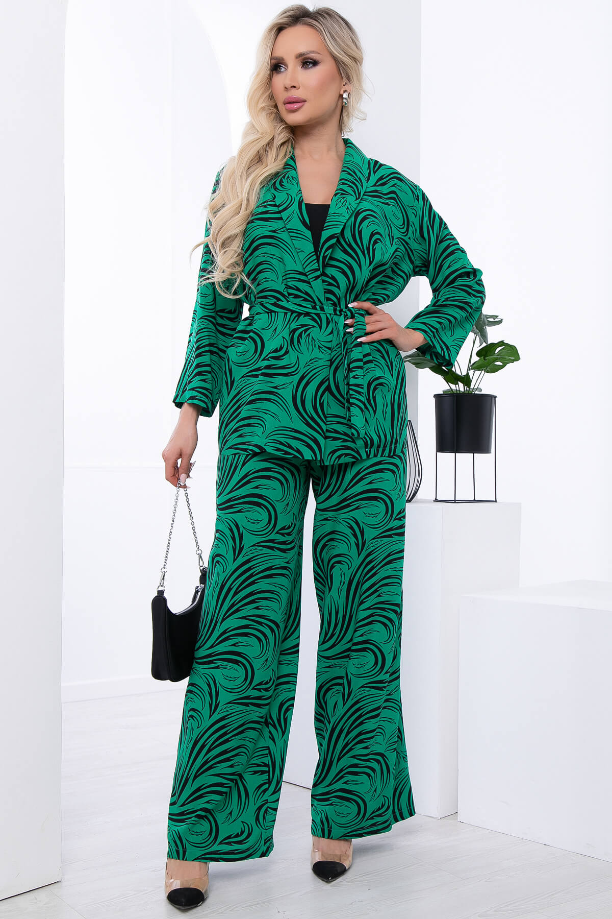 Костюм из лёгкой ткани идеально подойдёт для летнего расслабленного образа. Свободный крой не сковывает движений и дарит комфорт. Рукав три четверти, со спущенным плечевым швом.В комплект входит пояс из основной ткани, который позволит подчеркнуть преимущества фигуры.