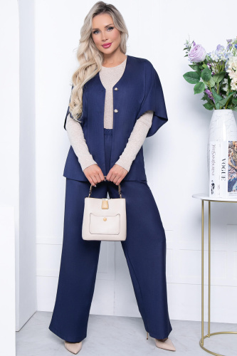 Костюм-двойка, состоящий из брюк прямого кроя и жакета. Комплект можно носить, подчеркнув талию поясом из основной ткани или же без него. В обоих вариантах образ будет смотреться красиво. Универсальный костюм, который отлично подходит как в теплое время года, так и в прохладу! Жакет можно использовать в дополнении к водолазке. Рукав широкий, свободного кроя добавит образу воздушности. Брюки по талии на резинке. Пояс из основной ткани входит в комплект.