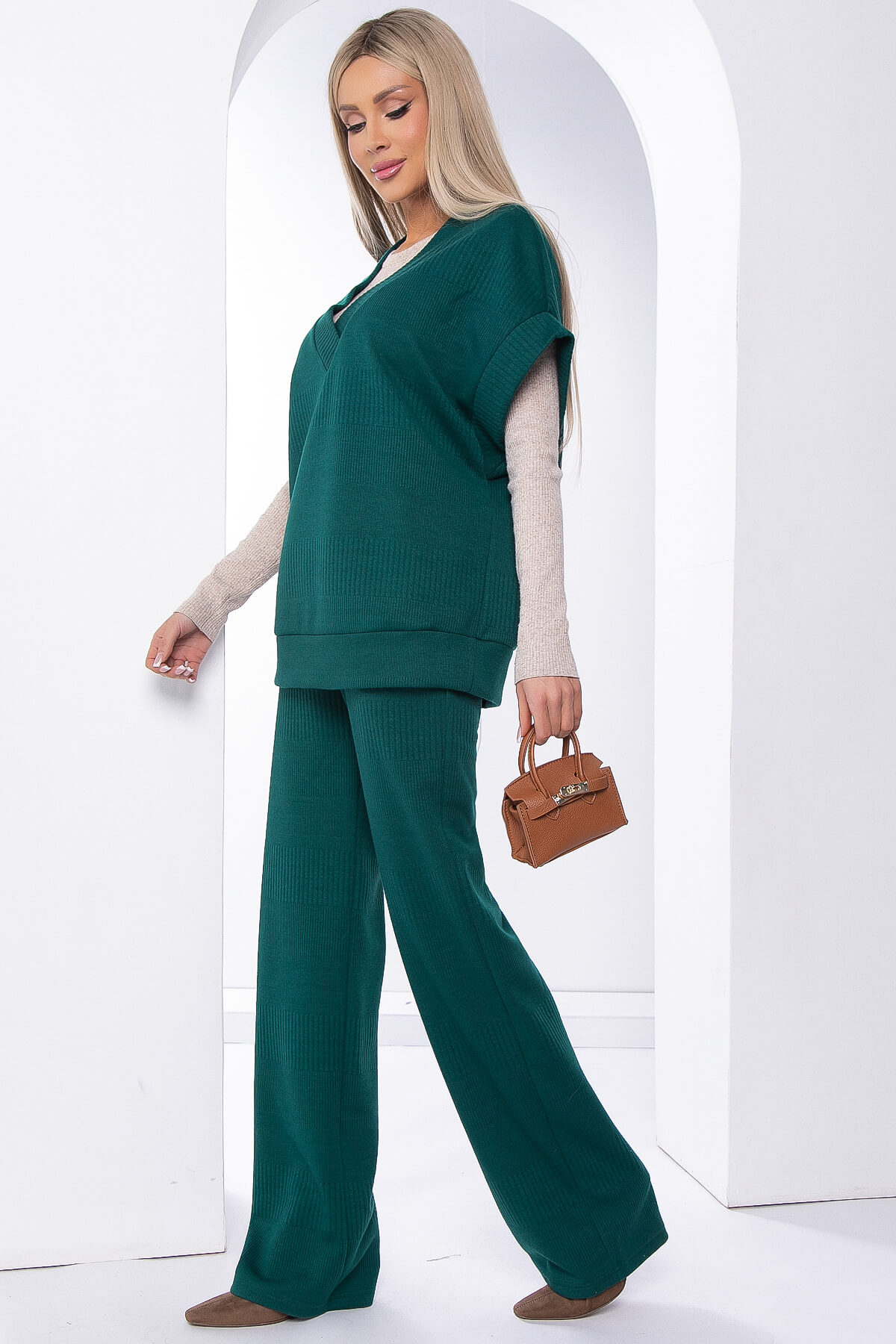 Костюм-двойка, состоящий из прямых брюк с высокой посадкой на резинке и жилета свободного кроя. Преимущество комплекта в том, что вы сможете самостоятельно носить как жакет, так и брюки. В повседневном образе смело сочетайте с лоферами или ботинками, а если нужен более официальный образ, с туфлями на каблуке.