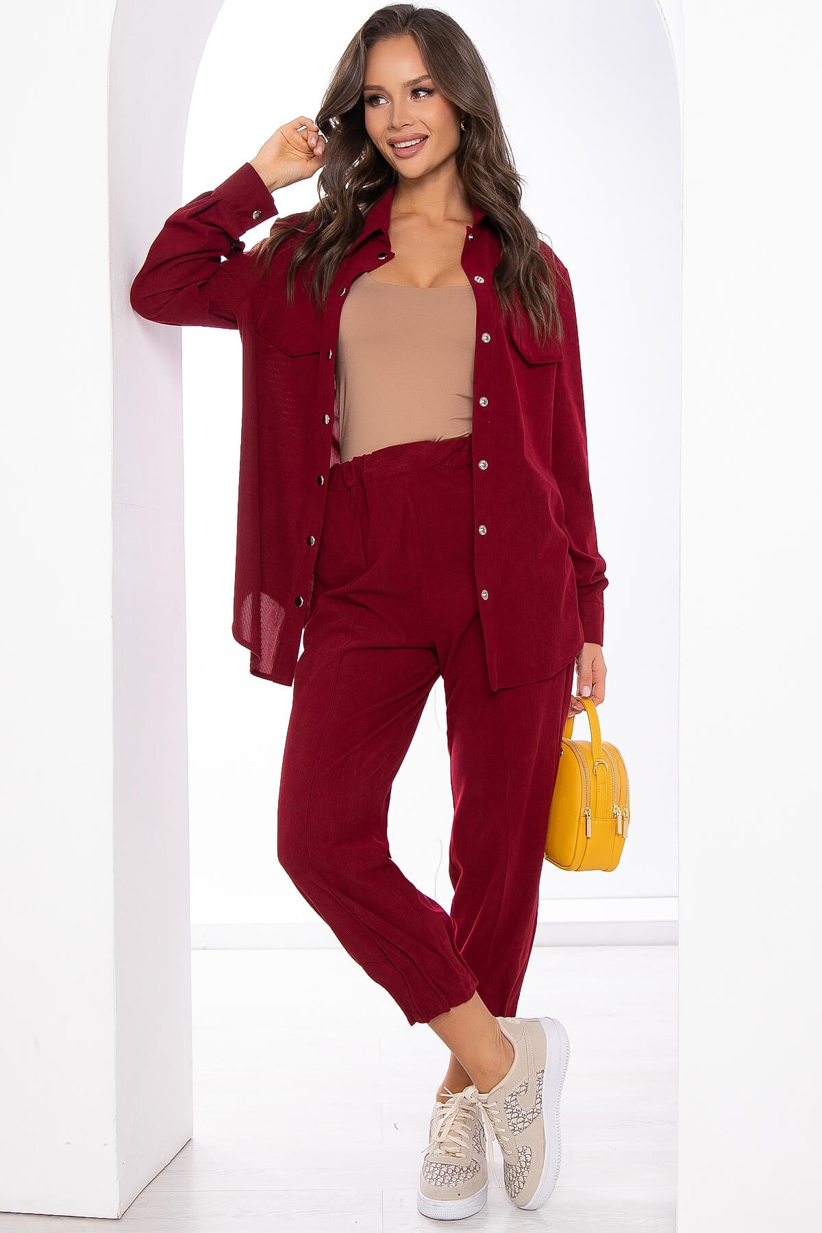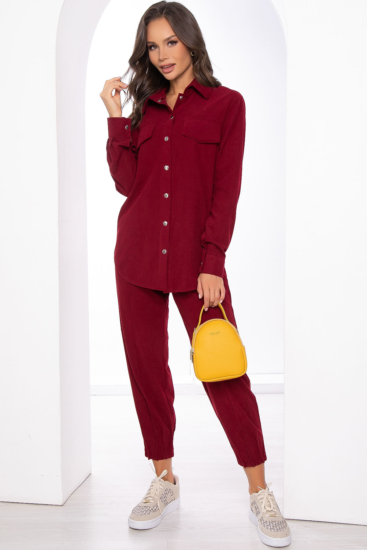 Стильный комплект станет вашей любой вещью в гардеробе! Костюм из двух предметов: комфортных брюк и рубашки. Рубашка из микровельвета в стиле оверсайз - абсолютно незаменимая вещь. С её помощь можно создавать большое количество образов и чувствовать себя комфортно. Рубашка застёгивается на кнопки, рукав втачной, длинный, на мажете. Брюки с высокой посадкой, талия на широкой резинке. В боковых швах есть карманы.