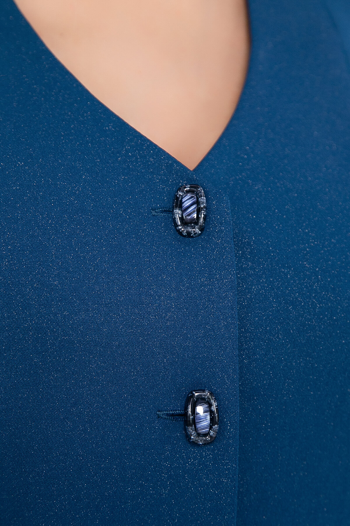 Очаровательный и женственный костюм из жакета и юбки. Приталенный жакет с закругленными бортами элегантно сочетается с прямой юбкой с разрезом. Благородный цвет с эффектом мерцания притягивает взгляды. А крой подчеркивают достоинства фигуры. В таком костюме Вы будете неотразимы на любом торжестве или деловой встрече. Юбка на скрытом обтачном поясе, на спинке на молнии. На жакете крупные перламутровые пуговицы. Рукав втачной, короткий.