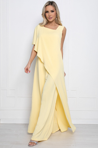 Очаровательный летний костюм, который безупречно подходит для торжественных мероприятий, таких как выпускной, день рождения или романтический вечер! Костюм двойка: брюки свободного кроя на резинке, накидка тоже свободного кроя.
