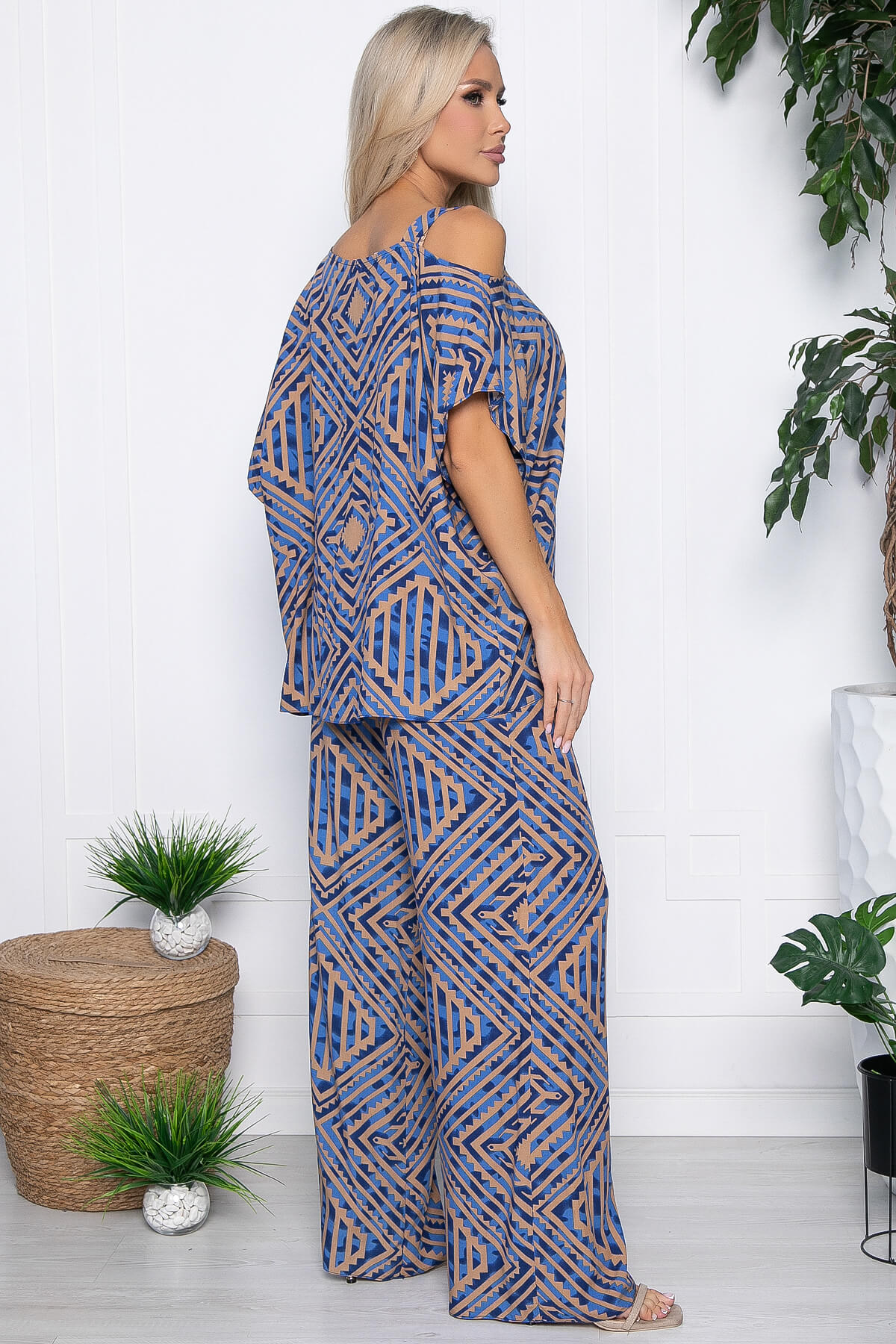 Легкий и одновременно изысканный, этот комплект отлично подойдет для повседневного ношения и отдыха на море. Костюм можно носить с каблуком и плоским ходом. Сочетание двух оттенков и геометрический принт создает уникальный образ, который точно будет привлекать восхищенные взгляды.