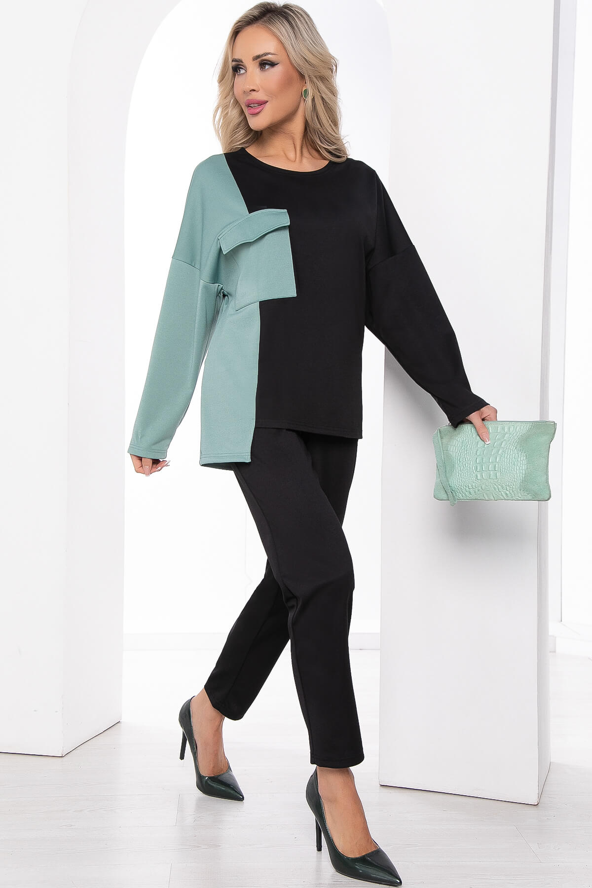 Костюм-двойка, состоящий из брюк, зауженных к низу, с высокой посадкой на резинке и джемпера свободного кроя с акцентной вставкой. Преимущество комплекта в том, что вы сможете самостоятельно носить как джемпер, так и брюки. В повседневном образе смело сочетайте с лоферами или ботинками, а если нужен более официальный образ, с туфлями на каблуке.