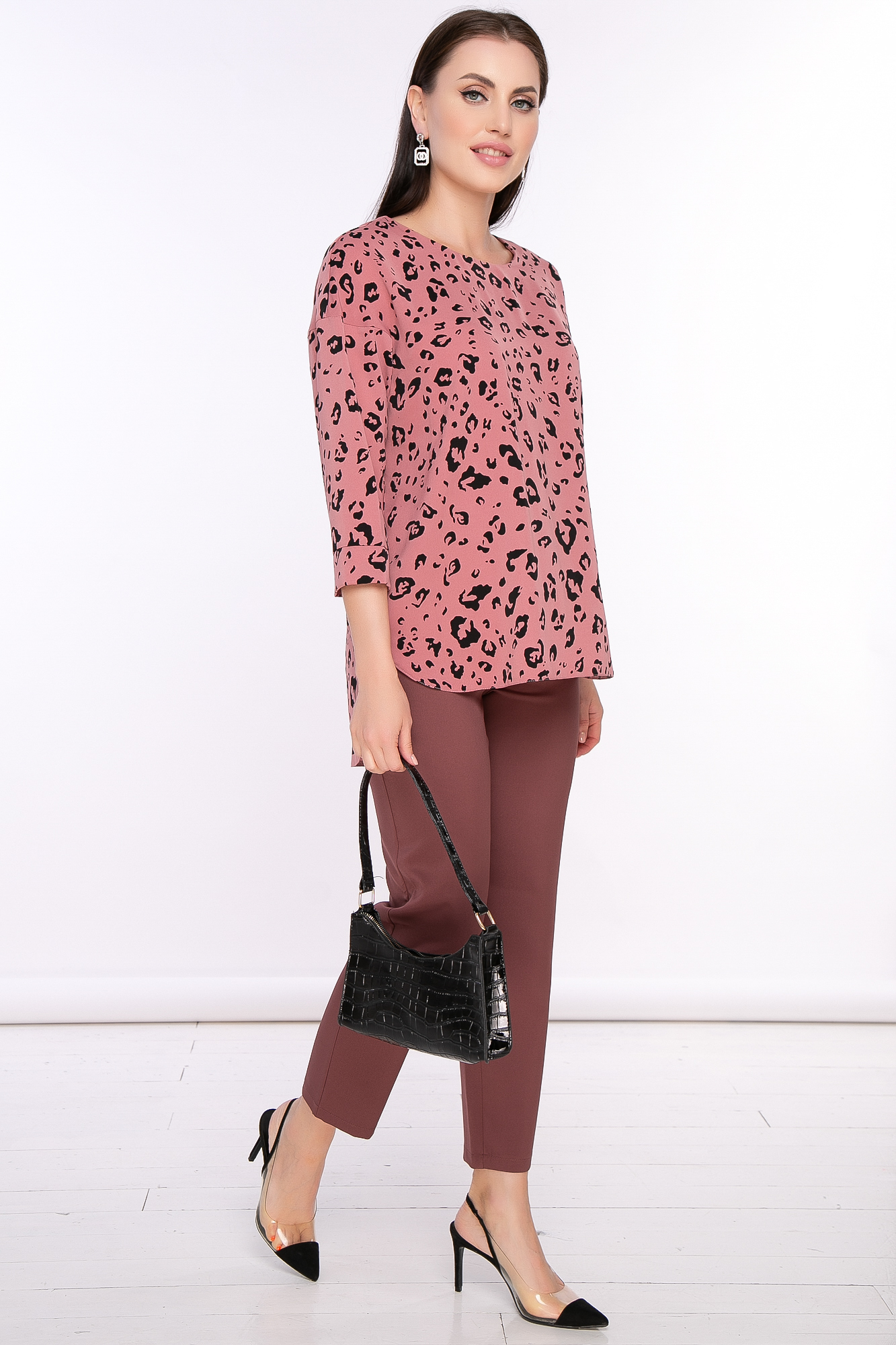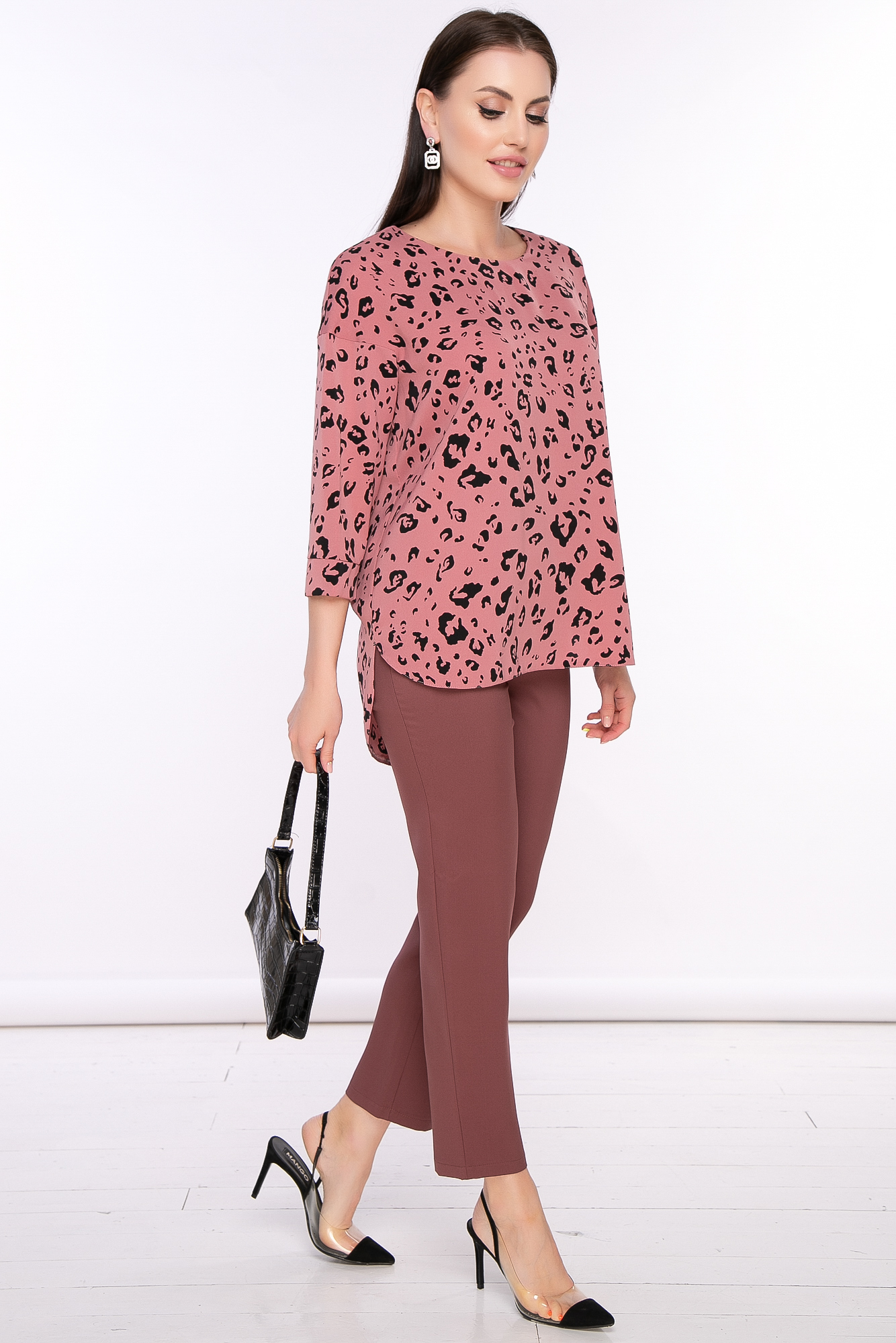- Блуза удобного свободного кроя, классический круглый вырез горловины;