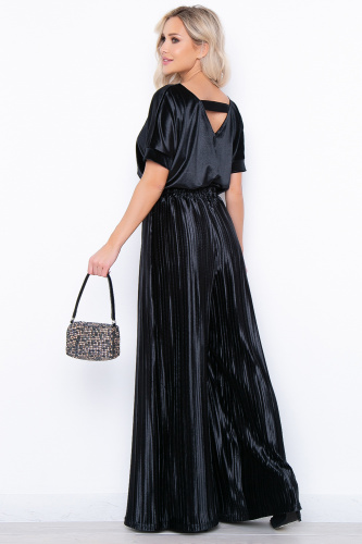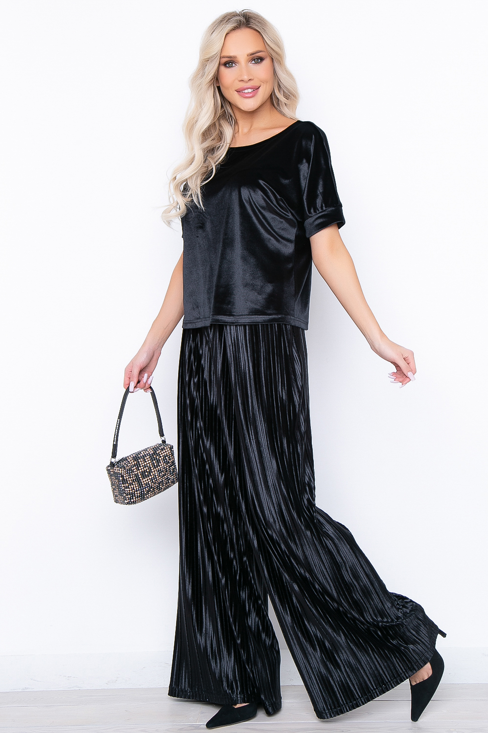 - Брюки палаццо из фактурного бархата на мягкой широкой резинке;