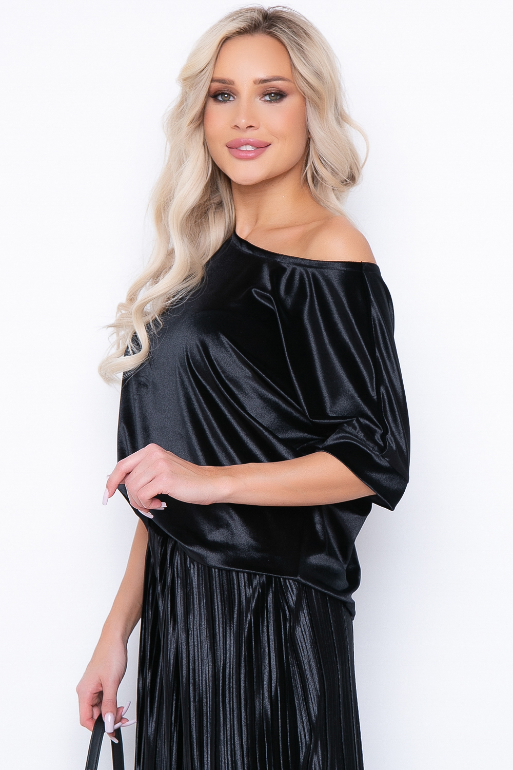 Роскошный бархатный костюм в глубоком чёрном оттенке. Богемный лоск этой новинки просто сводит с ума! Шикарные брючки с высокой посадкой не просто идеально смотрятся на фигуре, но и создают полное ощущение комфорта благодаря своему крою и мягкости материала. Образ в этом костюме уже будет считаться самодостаточным благодаря сочетанию двух видов бархата фактурного и гладкого.