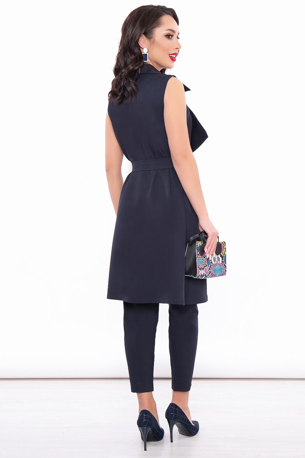 Брючные костюмы называют основой базового гардероба каждой модницы. Костюмы легко комбинируются с другими вещами, создавая образ, подходящий к любому случаю! Универсальный жилет полуприлегающего силуэта без рукава с дизайнерским отложным воротом. Брюки укороченные на притачном поясе, боковых швах карманы. Жилет без застёжек, фиксируется поясом с металлической пряжкой.