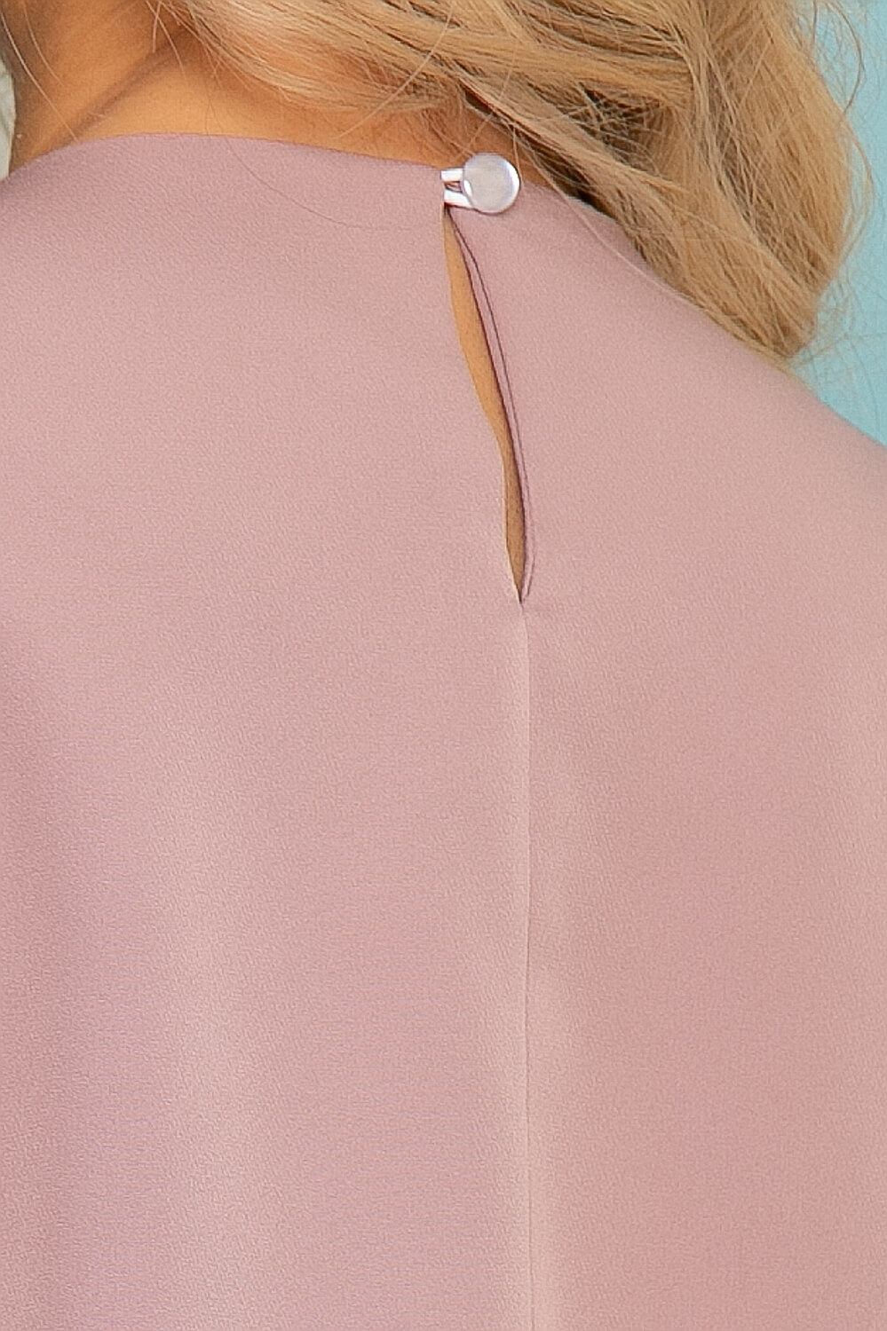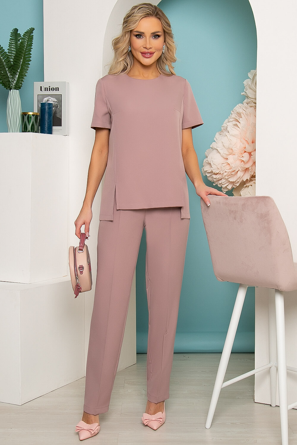 Модели с брюками консервативны. Они стали полноценным элементом офисного стиля. Их можно обыграть, сделав более раскованными, соблазнительными и женственными. Все, что нужно - выбрать подходящие аксессуары! Блуза свободного кроя, спереди небольшие разрезы, спинка удлиненная. Классический вырез горловины, рукав короткий, втачной. Брюки из костюмной ткани на резинке, прямого кроя, с удобными карманами в боковых швах.