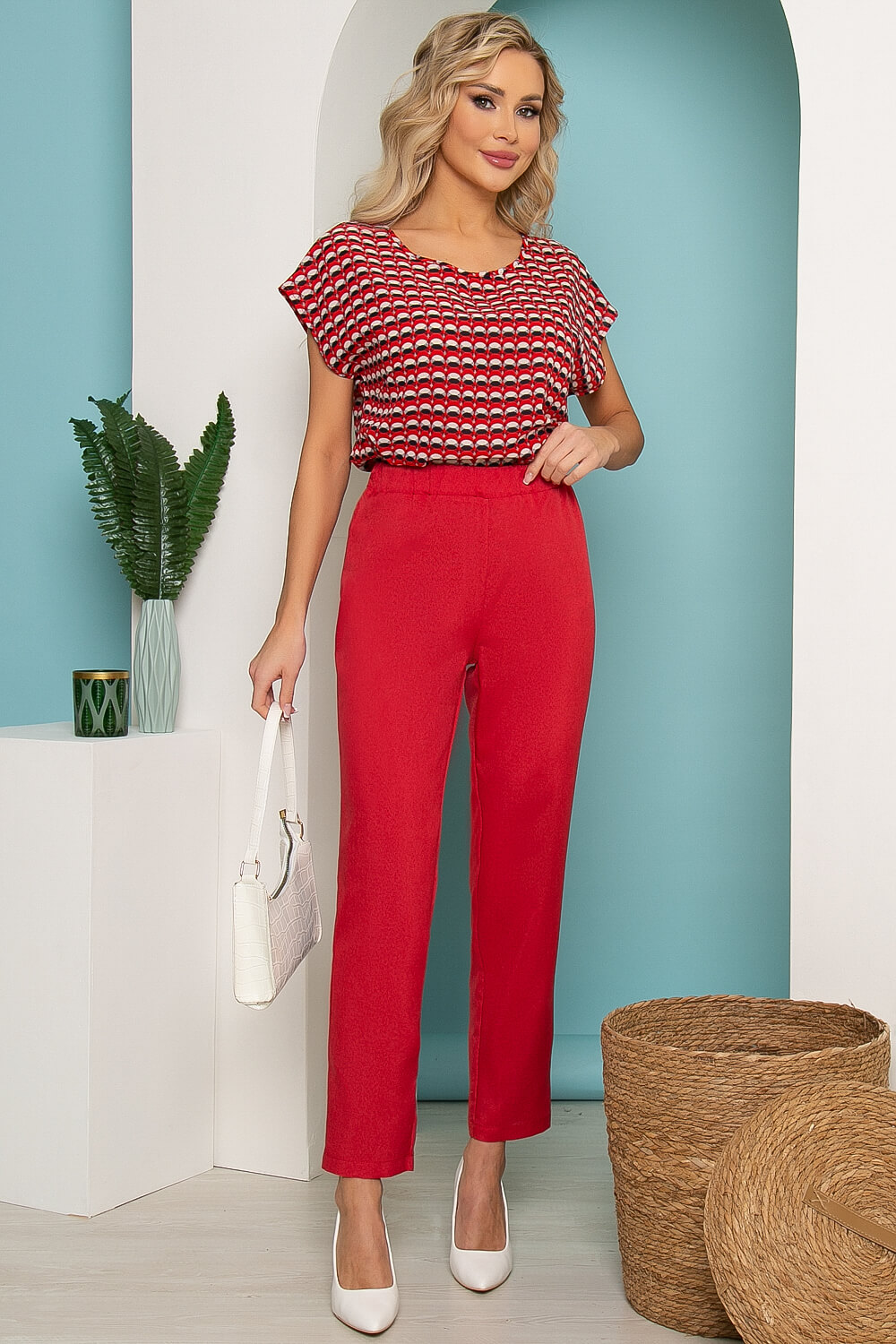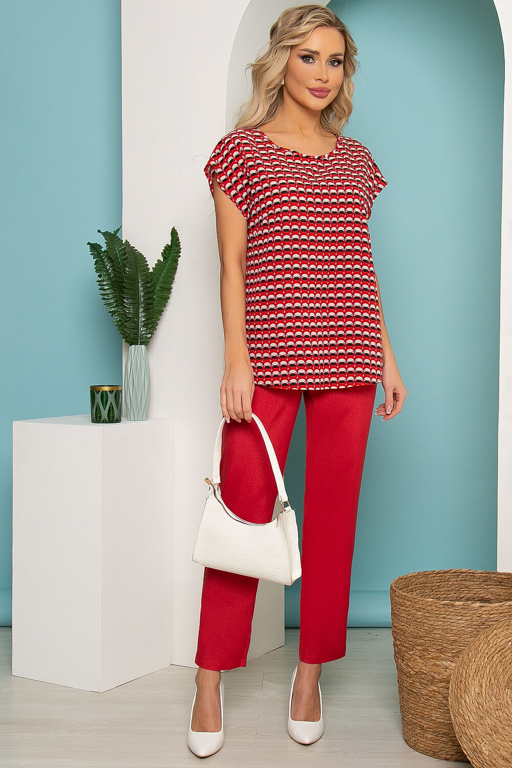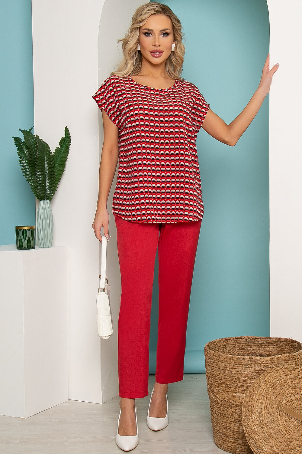 Шикарный костюм прекрасно впишется в Ваш базовый гардероб. Яркое сочетание цветов создаст по-настоящему летнее настроение! Комплект отлично комбинируется с другими вещами. Женственная блуза удобного свободного кроя, классический круглый вырез горловины, по бокам для удобства разрезы. Классические брюки прямого кроя, талия на резинке, комфортны в носке, универсальная длина.