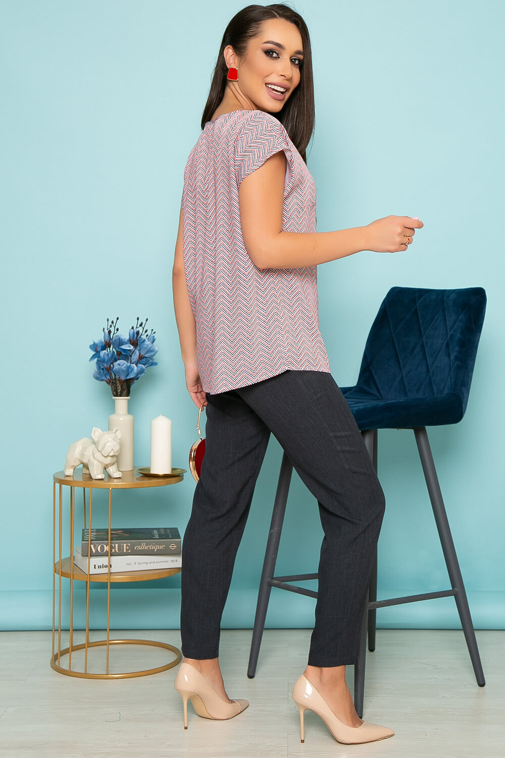 Шикарный костюм прекрасно впишется в Ваш базовый гардероб. Классическое сочетание цветов позволяет создать деловой образ. Комплект отлично комбинируется с другими вещами. Женственная блуза удобного свободного кроя, классический круглый вырез горловины, по бокам для удобства разрезы. Классические брюки прямого кроя, талия на резинке, комфортны в носке, универсальная длина.