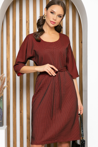 Платье в терракотовом цвете - эффектное и простое визуальное решение для яркого повседневного образа. Платье прямого кроя скрадывает лишние объёмы в области талии и бёдер. Цельнокроеный рукав с проймой "Летучая мышь" создаст комфорт при движении. В комплект входит пояс из основной ткани, которым можно подчеркнуть линию талии.