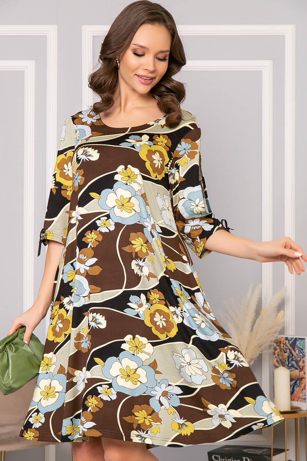 Женственное летящее платье из приятной к телу ткани. А-силуэт позволит чувствовать себя в таком наряде максимально комфортно, ведь он не облегает фигуру. Акцентным элементом платья являются рукава с атласными лентами для завязывания. Платье прекрасно подойдёт в качестве повседневного или нарядного варианта.