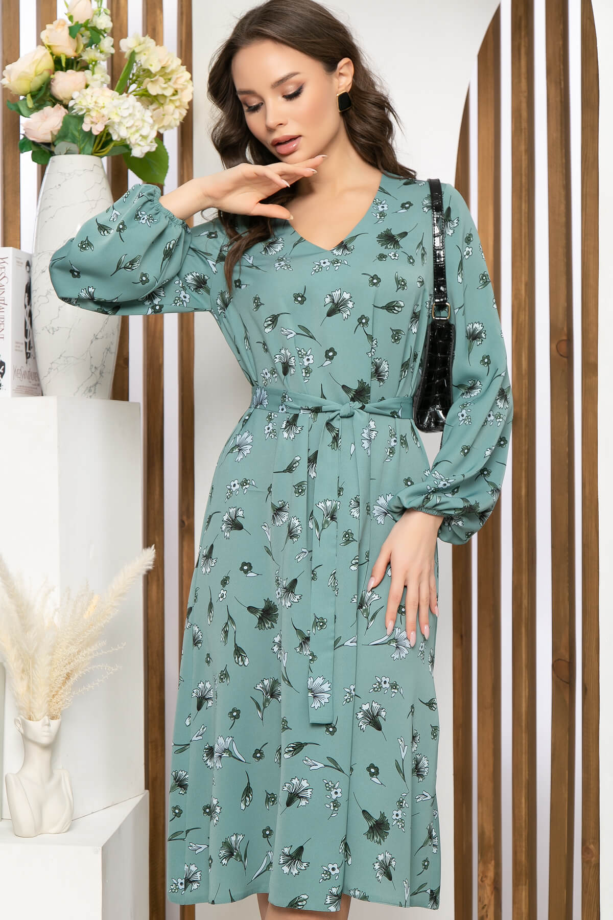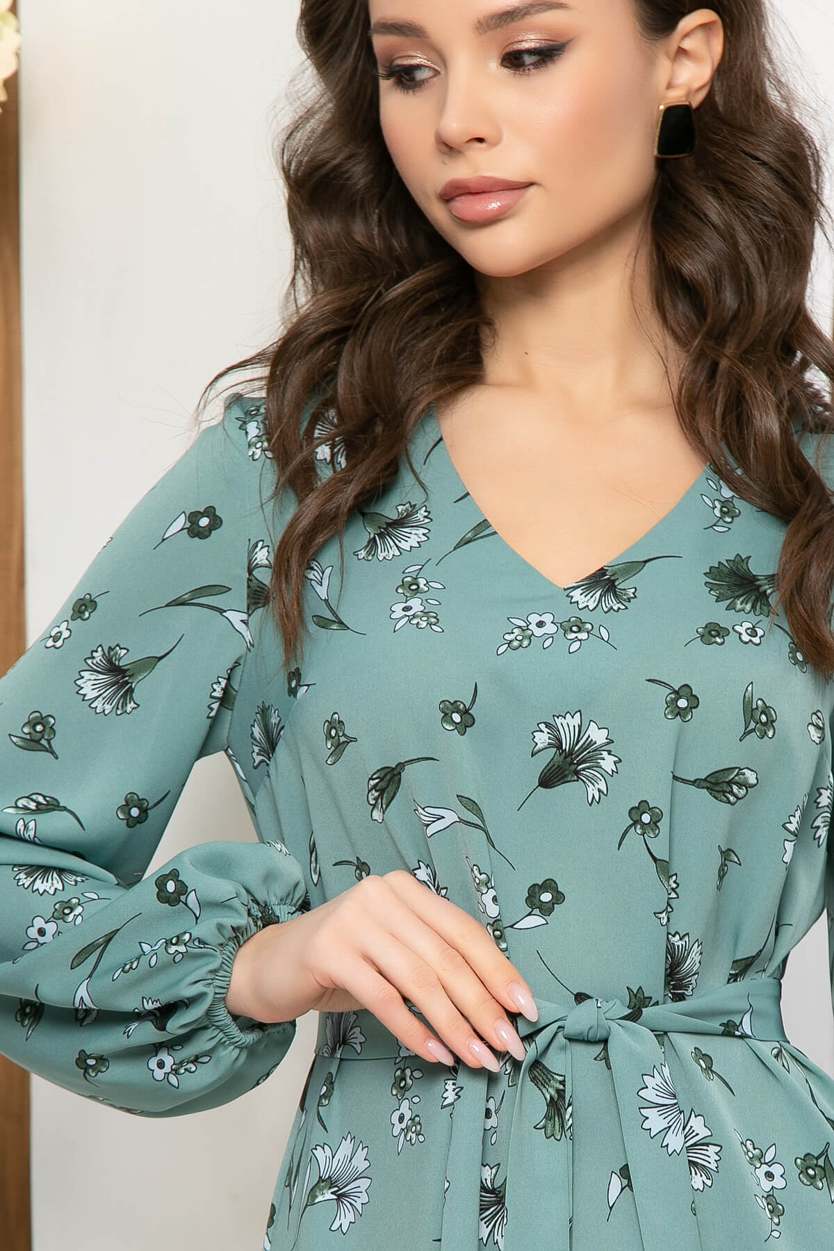 Струящееся платье идеально подчёркивающее Вашу женственность. Платье А-силуэта с красивым V-образный вырезом горловины красиво очертит зону декольте. Красивый пышный рукав на резинке. Пояс из основной ткани входит в комплект. Платье без подкладки.