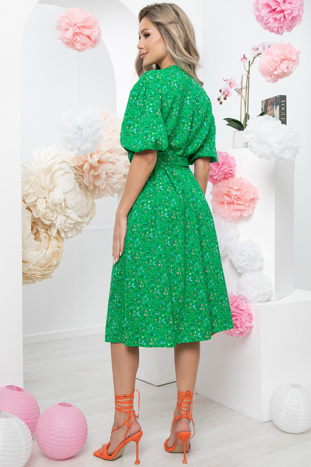 Яркое летнее платье точно не оставит Вас без внимания окружающих. Роскошные, объемные рукава со спущенным плечевым швом добавят образу легкости и изысканности. Все преимущества фигуры подчеркнет пояс из основно ткани, который идет в комплекте. Талия отрезная, юбка полусолнце.
