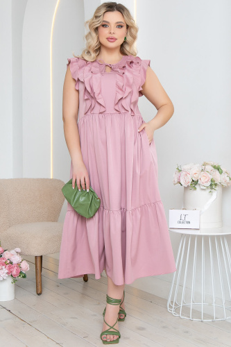 Нарядное платье длины миди из гладкой шелковистой ткани в шикарном оттенке. Наденьте это платье в обычный день и обеспечьте себе праздничное настроение. Верхняя часть платья декорирована изящными вертикальными рюшами. Талия отрезная.