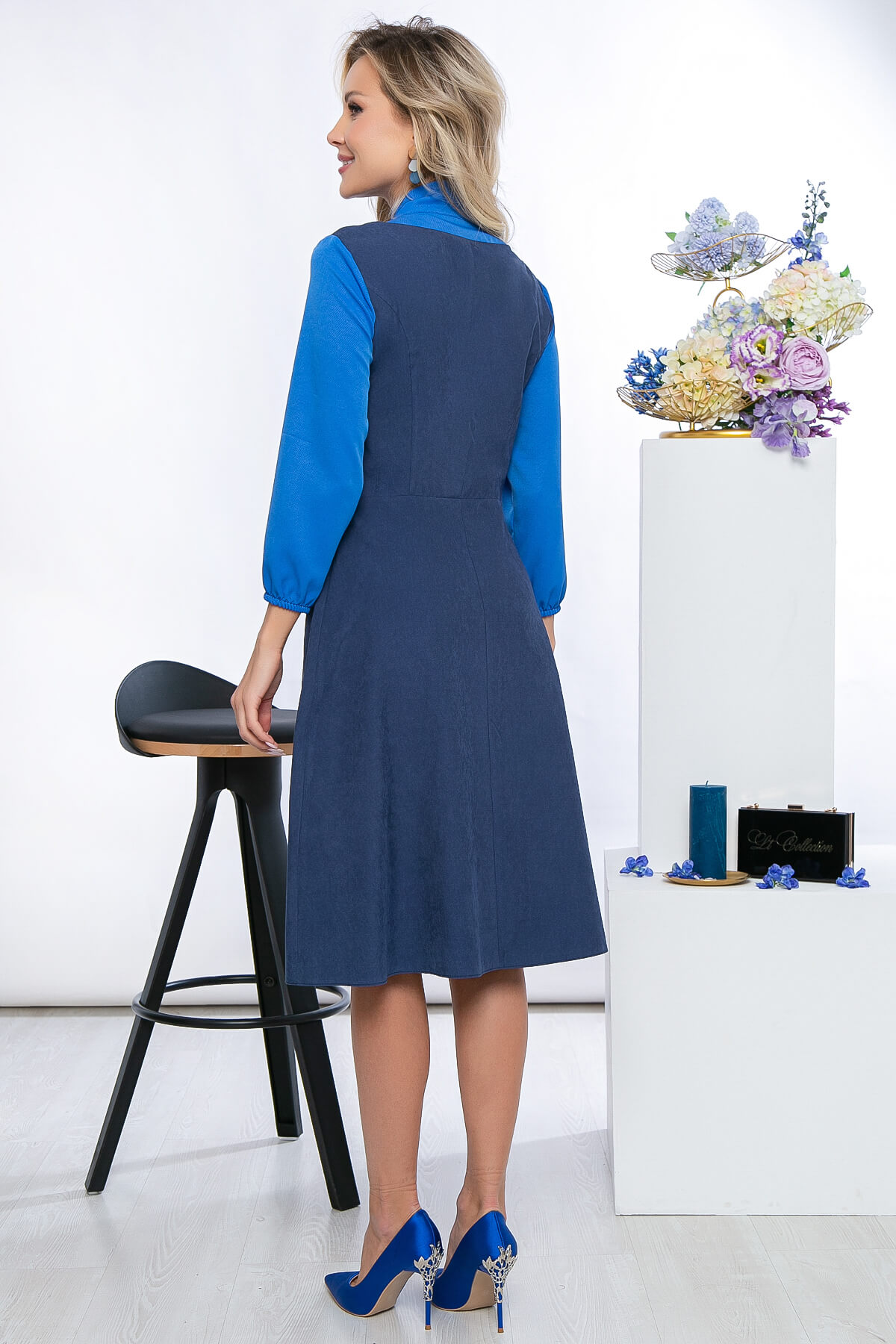 Элегантное платье не оставит Вас без внимания окружающих. Приталенное платье подчеркнет все Ваши преимущества фигуры, оно отлично смотрится даже без аксессуаров. Тип горловины, галстук на завязках, придаст образу изюминки. Рукав втачной, три четверти, с имитацией рубашки. Платье подойдет как для офиса, так и для повседневной жизни.