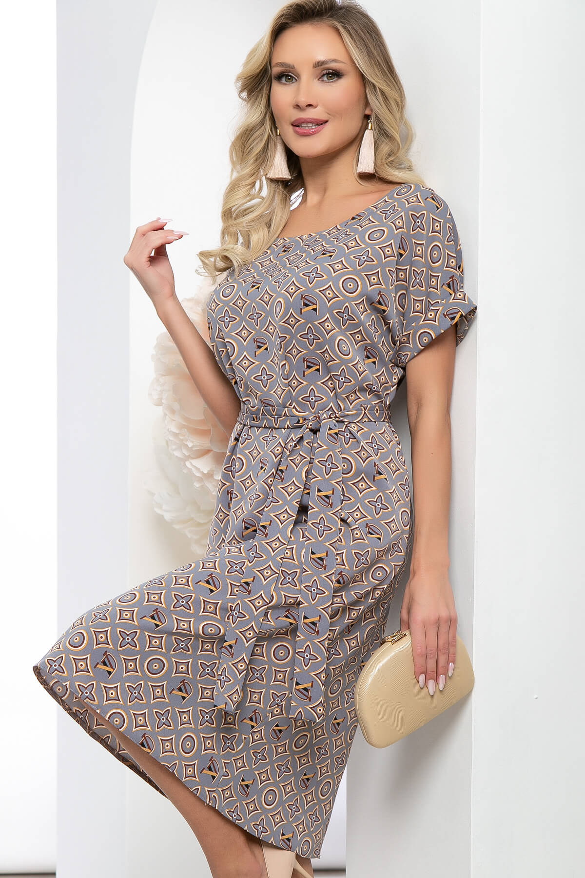 Элегантное платье, которое подходит как для создания свободного образа, так и для более утонченного. В комплект входит ремень из основной ткани, который подчеркивает все преимущества фигуры и придает женственности. Рукав укороченный, цельнокроенный с отворотом.