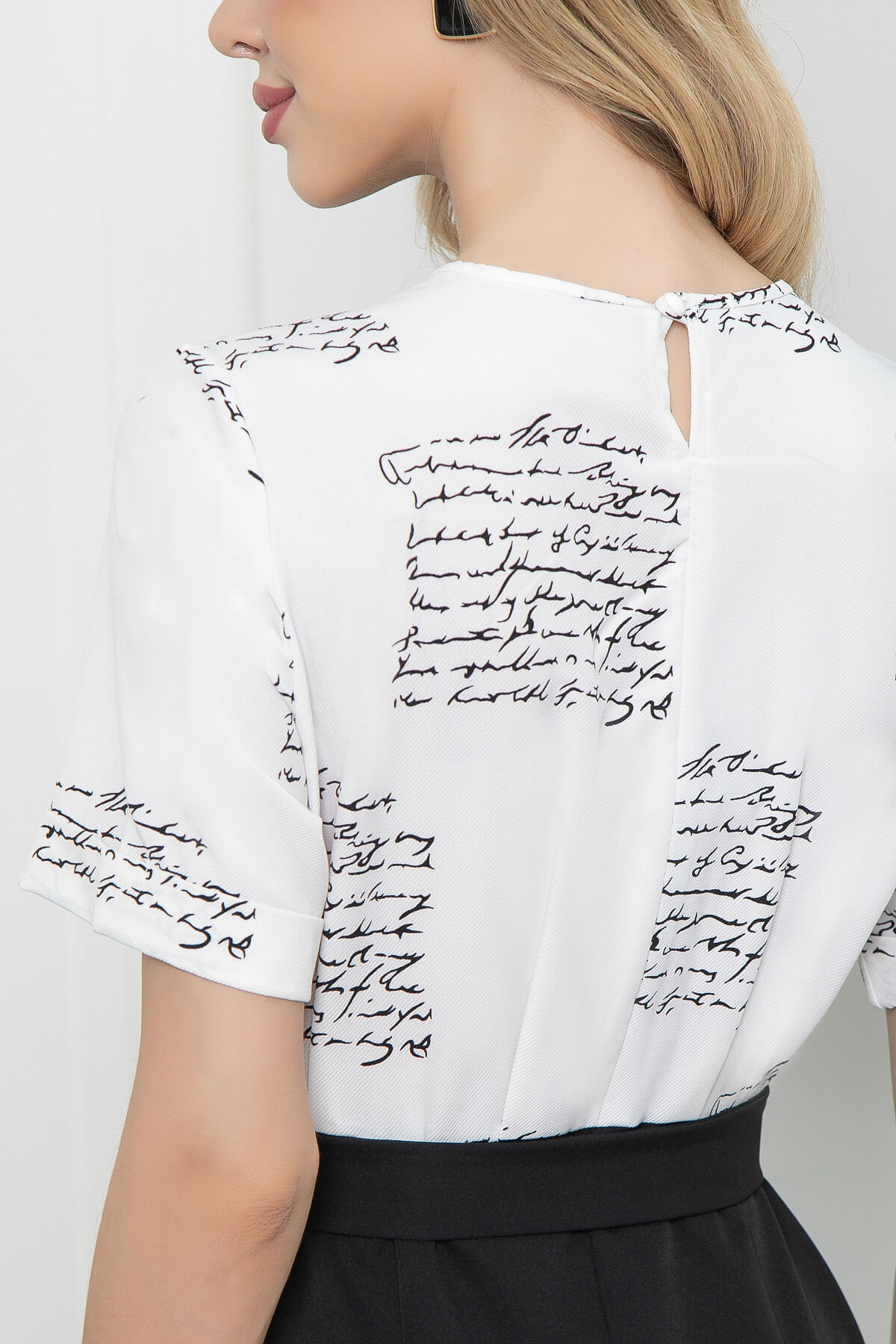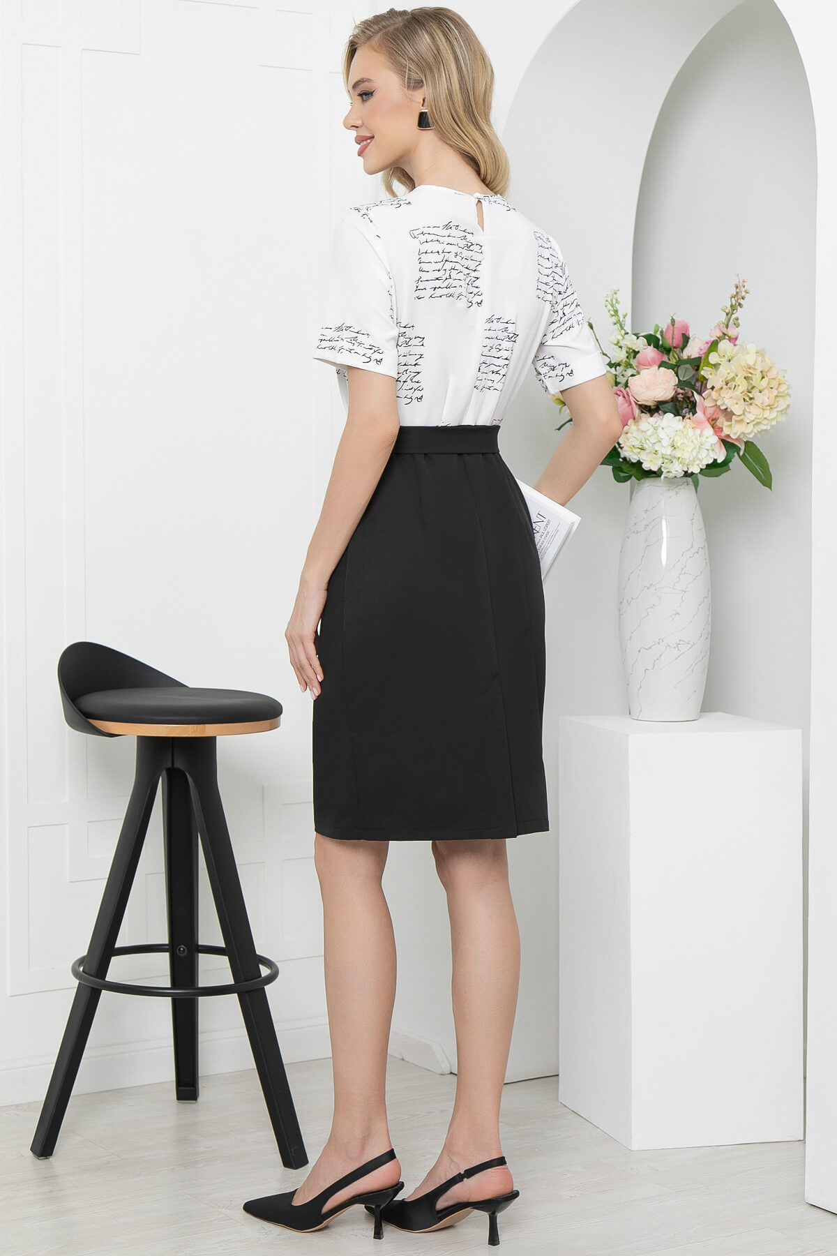 Платье с ассиметричным верхом в классическом стиле идеально разнообразит Ваш офисный образ. Платье выполнено из комбинированных материалов приятных к телу. Верхняя часть выполнена с имитацией блузы с коротким втачным рукавом. Округлый вырез горловины, по спинке застегивается на застёжку "петля-пуговица". В боковом шве есть потайная молния. Платье приталенного силуэта, в боковых швах расположены карманы, сзади на юбке шлица. В комплекте пояс с пластиковой пряжкой.