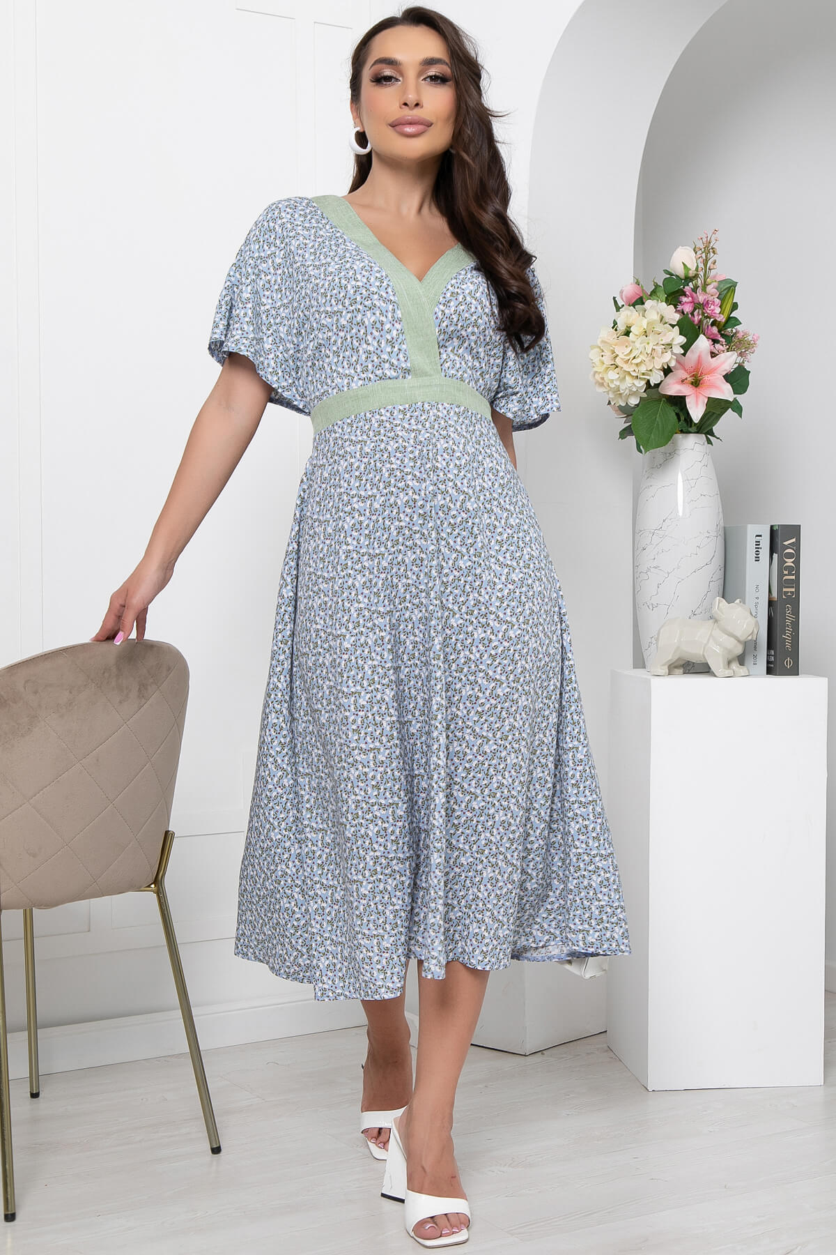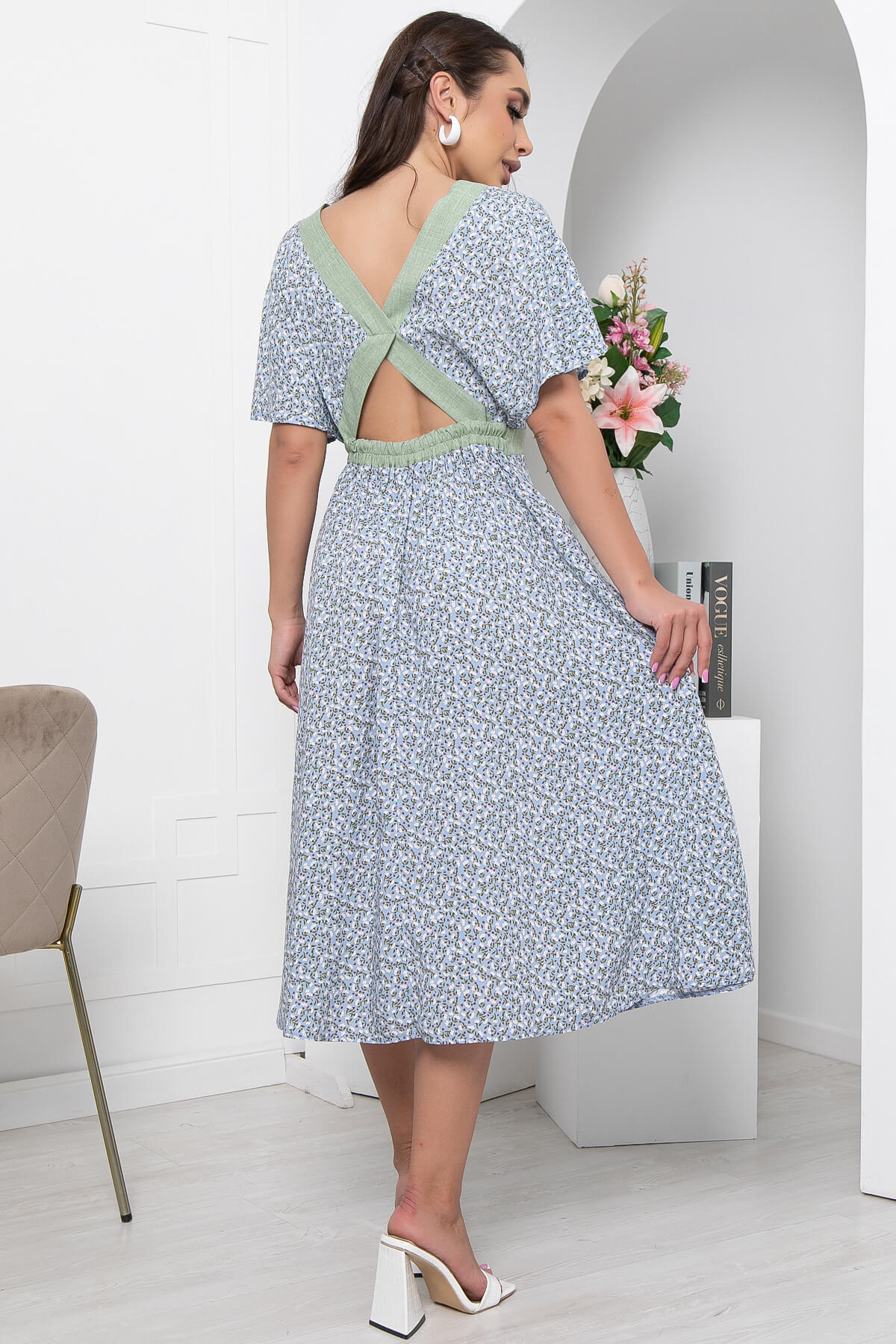 Стильное платье нежного оттенка неприхотливо в уходе и выборе аксессуаров, но при этом является самодостаточным элементом образа. Изящности образу придает акцентный вырез по спинке. Рукав укороченный, цельнокроенный. Талия по спинке на резинке.