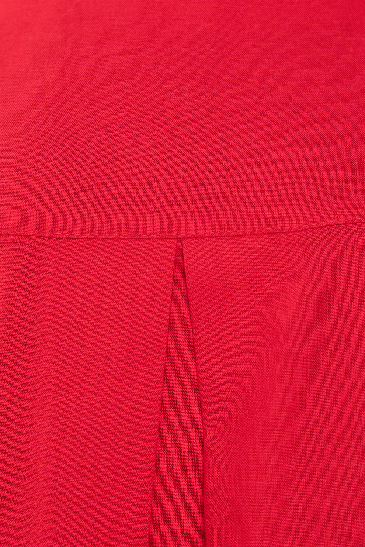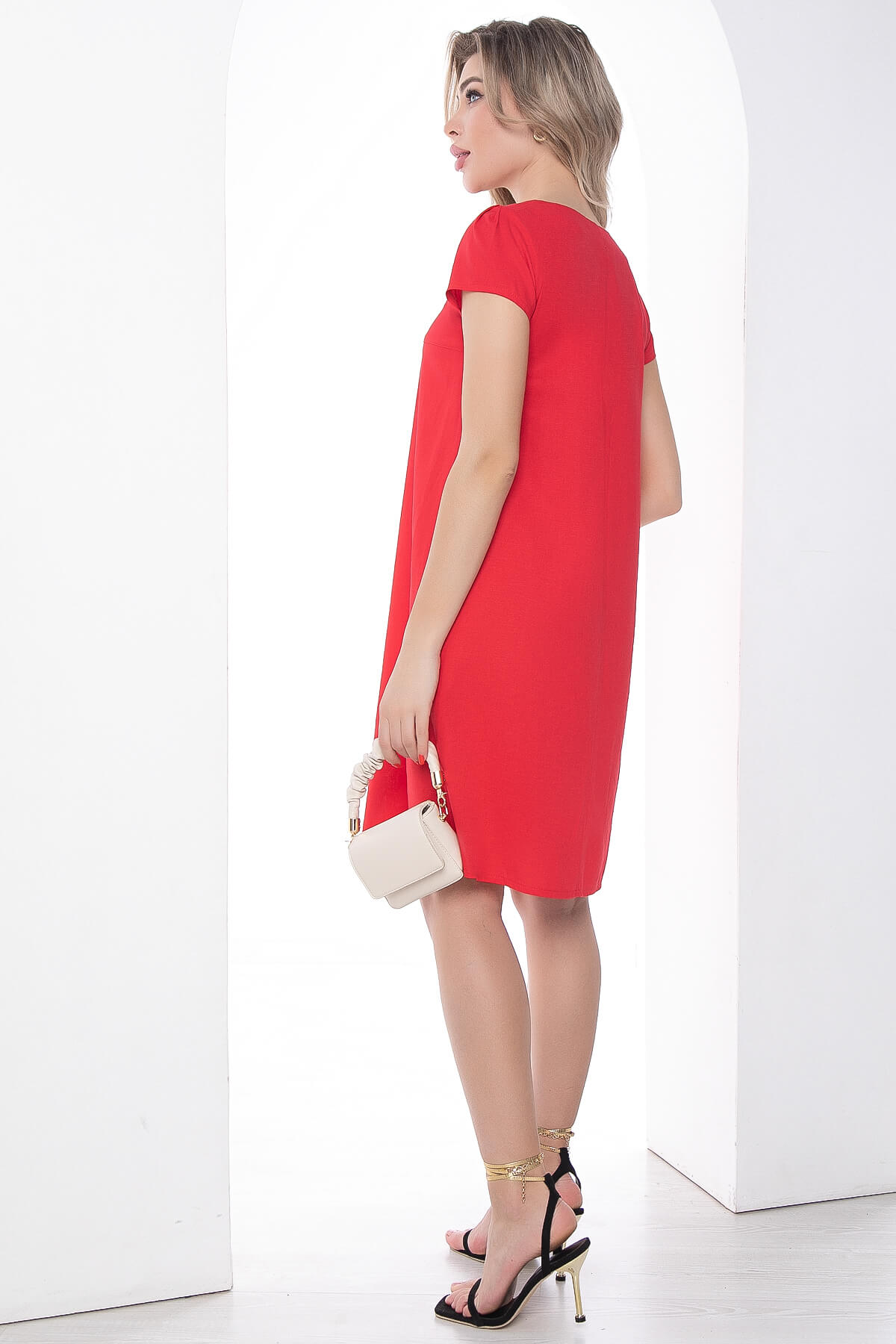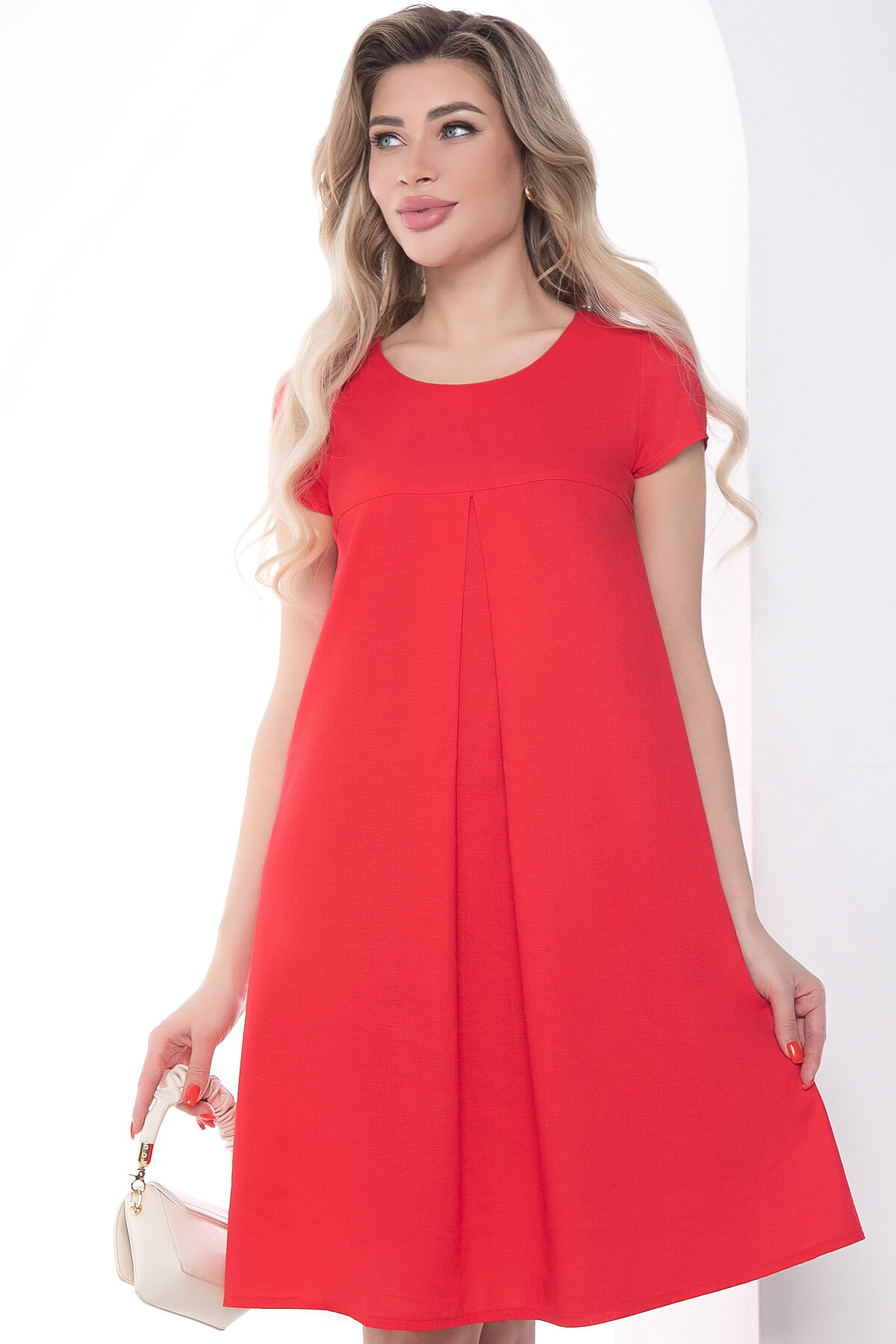 Стильное платье прекрасно подойдёт для летних повседневных образов. Платье свободного кроя, перед украшает встречная складка. Вырез горловины - округлый. Рукав втачной, короткий.