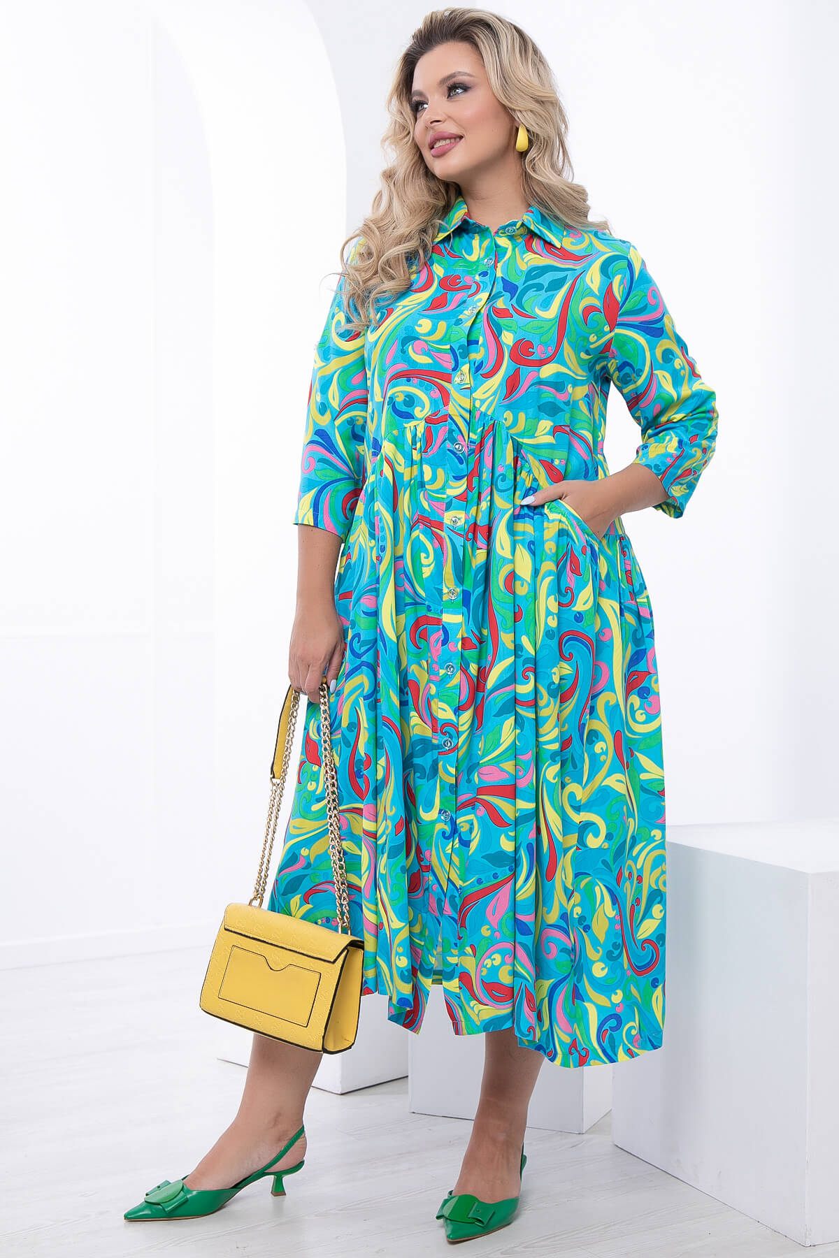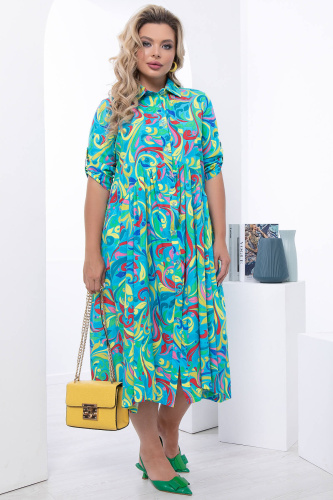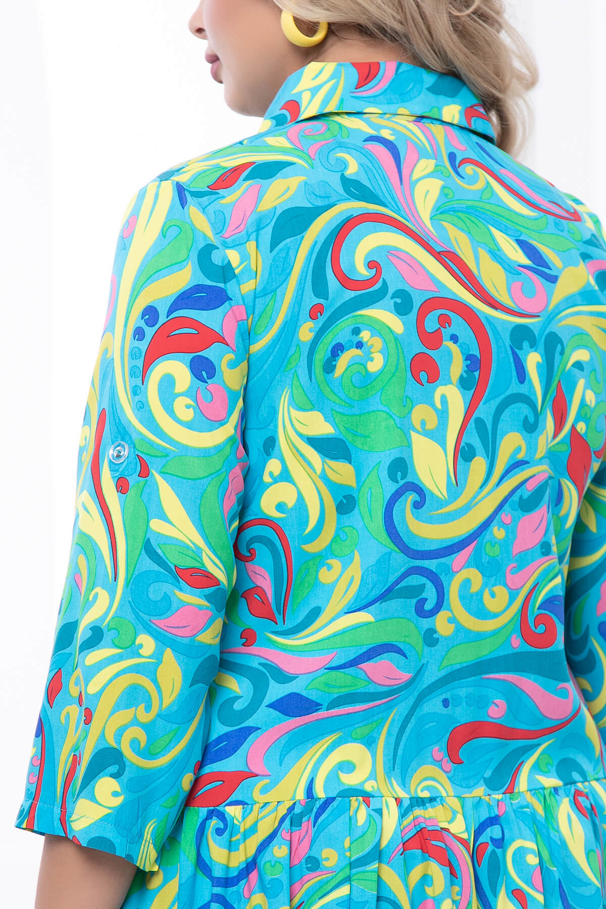 Летящее платье из штапеля с ярким принтом - идеальный вариант для создания женственного образа для любого случая. Платье свободного кроя рубашечного стиля. Рукав длинный, втачной.
