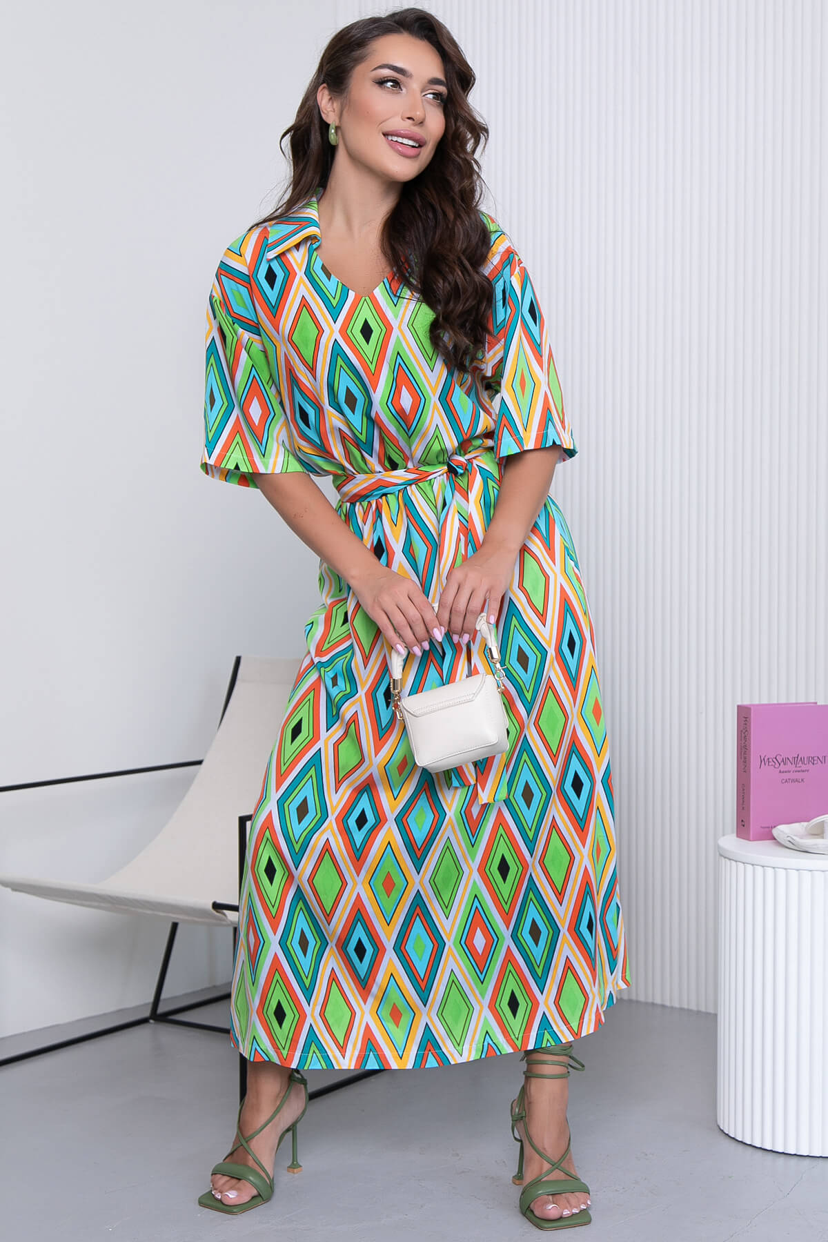 Яркое летнее платье придаст вам чувство легкости и воздушности. Оно точно поднимет Вам настроение на целый день! Талия на резинке. По низу изделия в боковых швах разрезы придадут образу женственности. В комплект входит пояс из основной ткани.