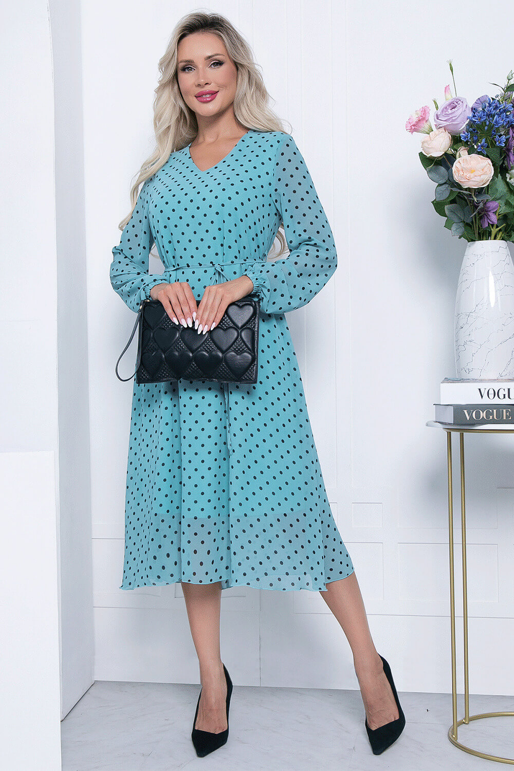 Шифоновое летящее платье идеально подчёркивающее Вашу женственность. Платье свободного силуэта на подкладке. Мягкий V-образный вырез горловины красиво открывает зону декольте и Ваши ключицы. Рукав длинный, втачной. Пояс из основной ткани входит в комплект.