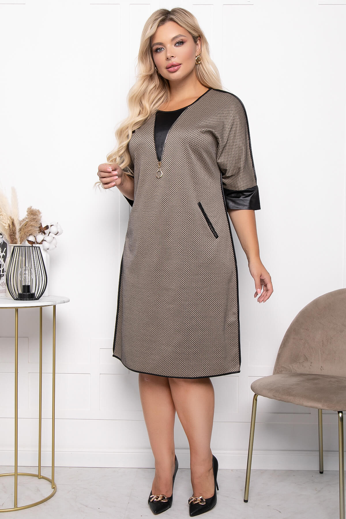 Стильное платье с декоративными вставками. будет отлично смотреть как с ботинками, так и с туфлями или ботильонами. Рукав реглан, три четверти, по низу декоративный манжет с контрастной отделкой. Изделие украшает декоративный замок на груди.