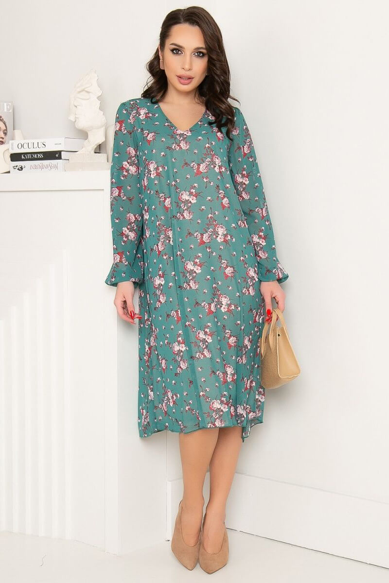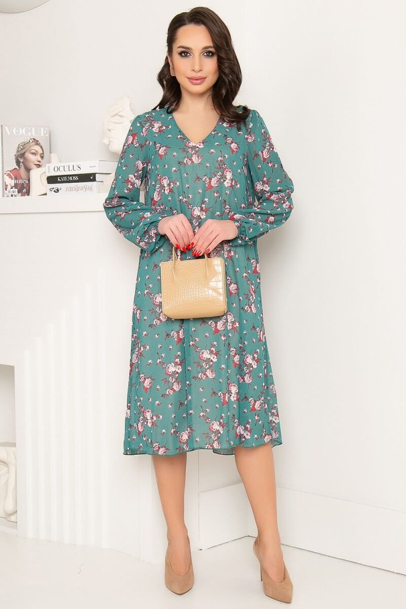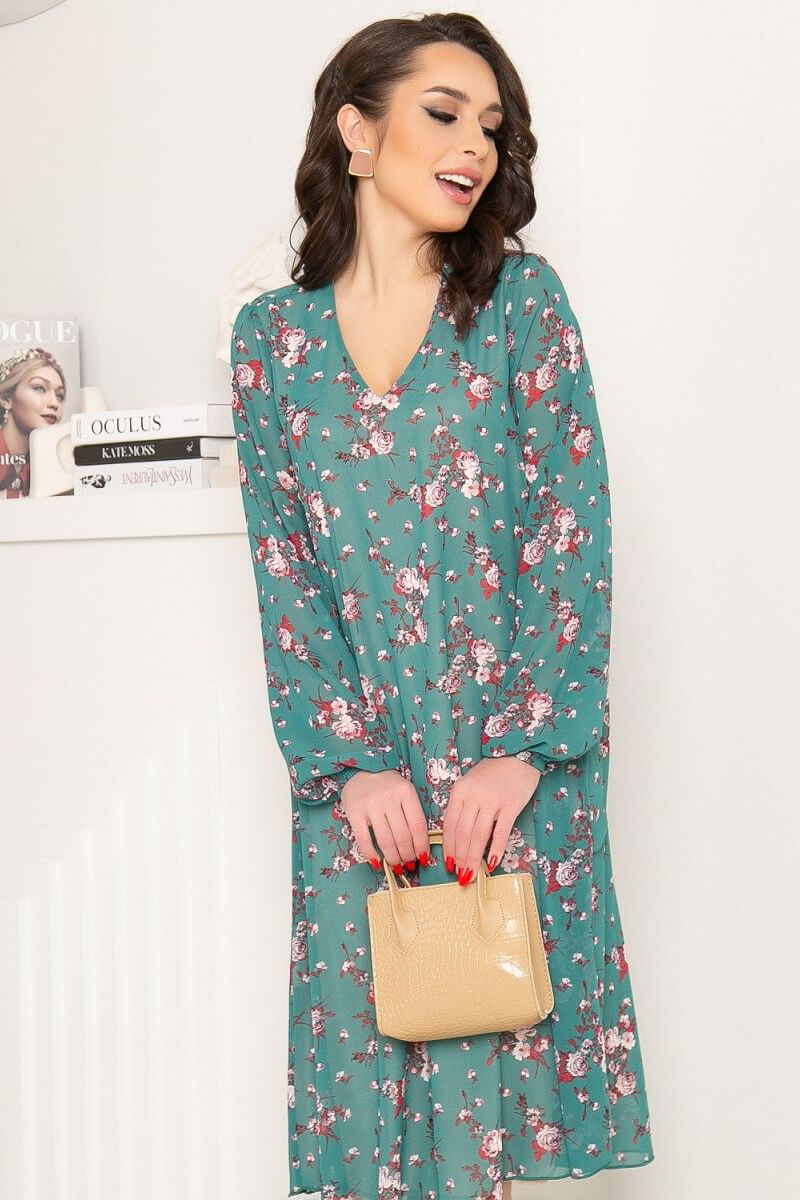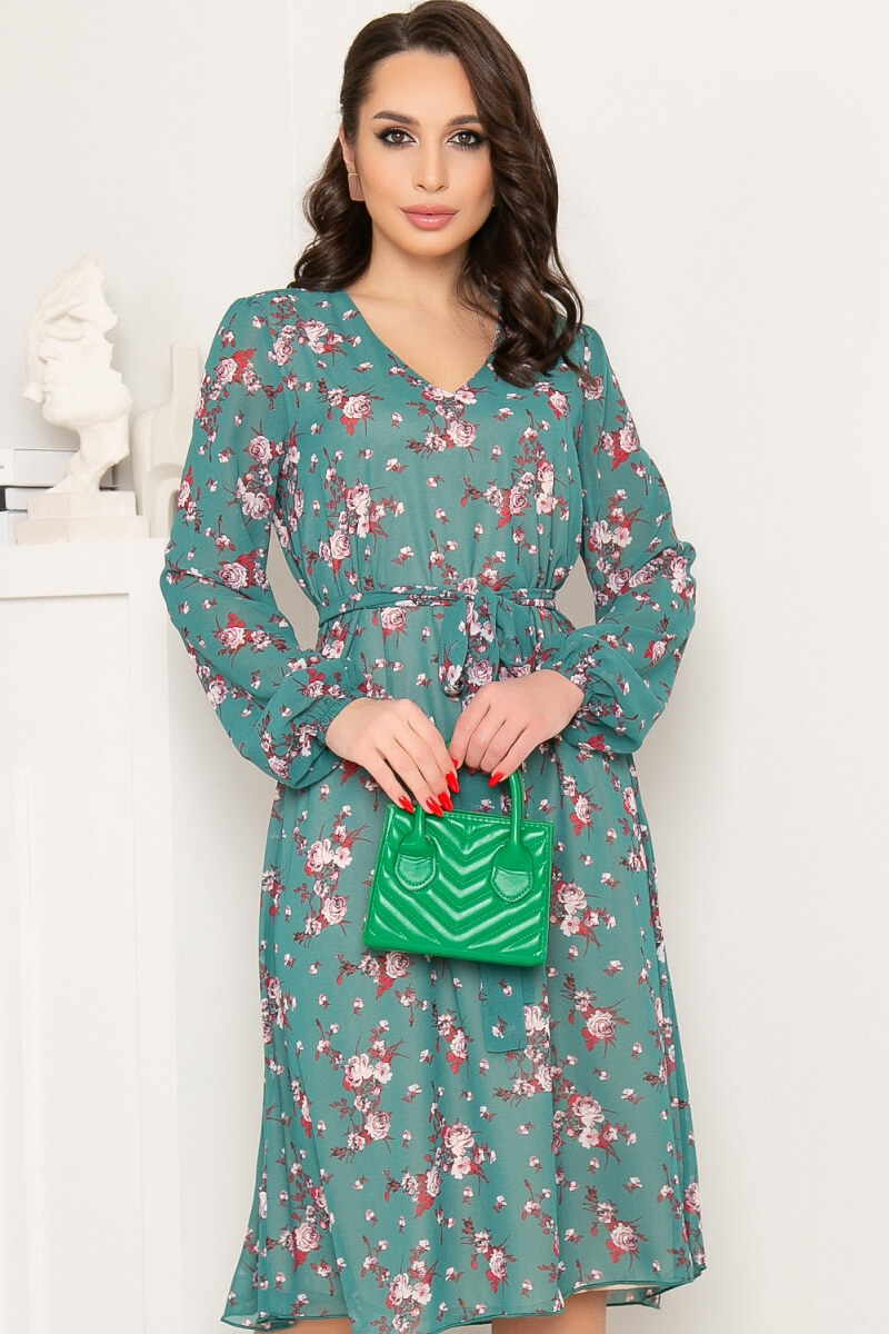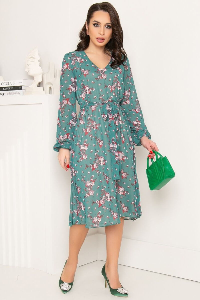Шифоновое летящее платье идеально подчёркивающее Вашу женственность. Платье свободного силуэта на подкладке. Мягкий V-образный вырез горловины красиво открывает зону декольте и Ваши ключицы. Рукав длинный, втачной. Пояс из основной ткани входит в комплект.