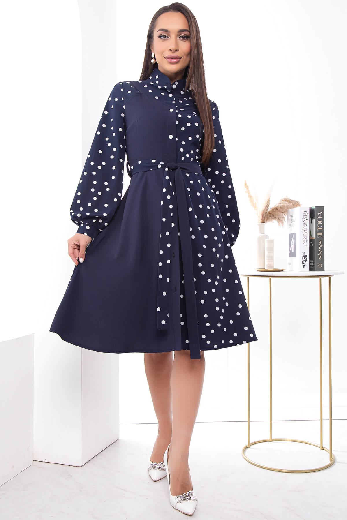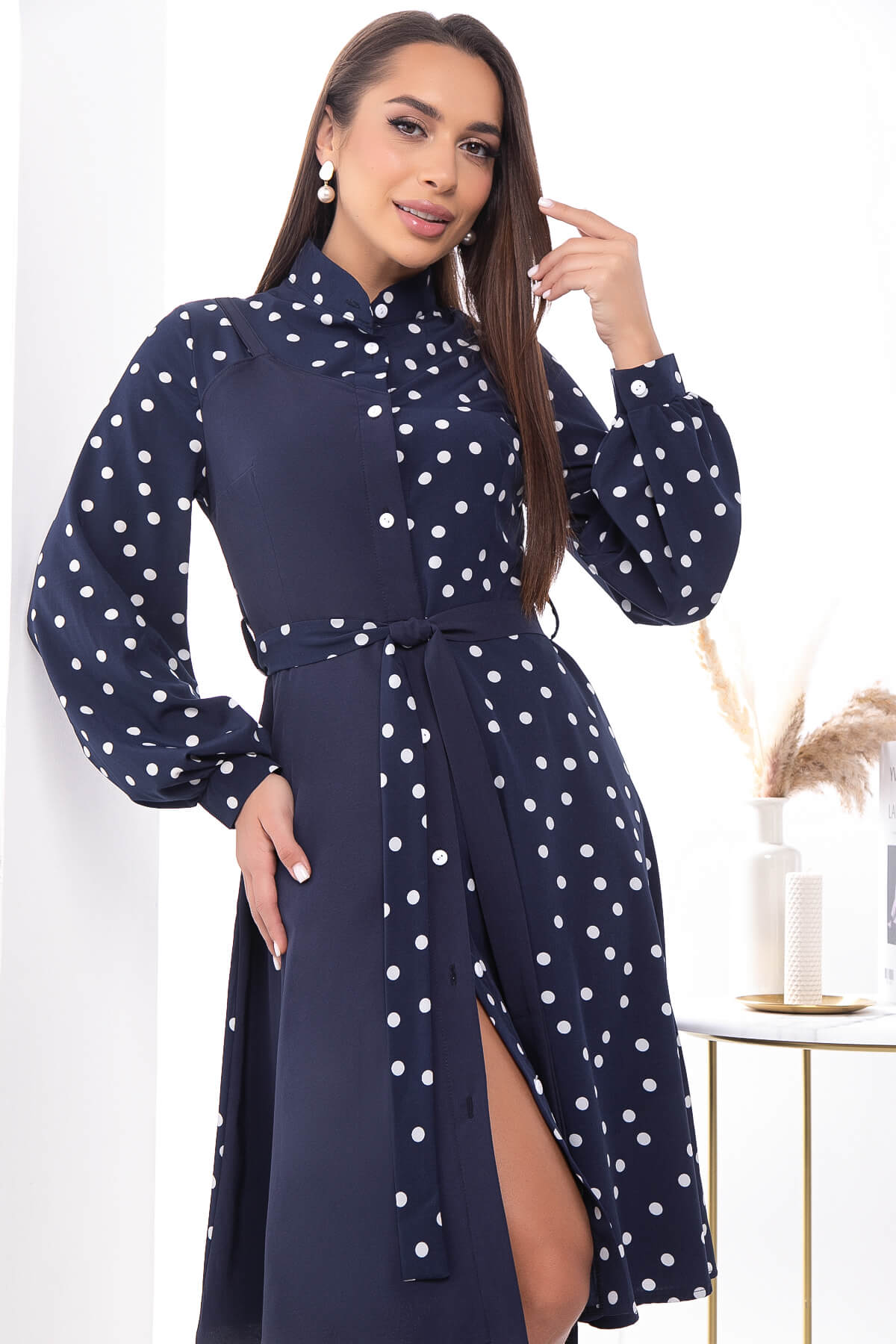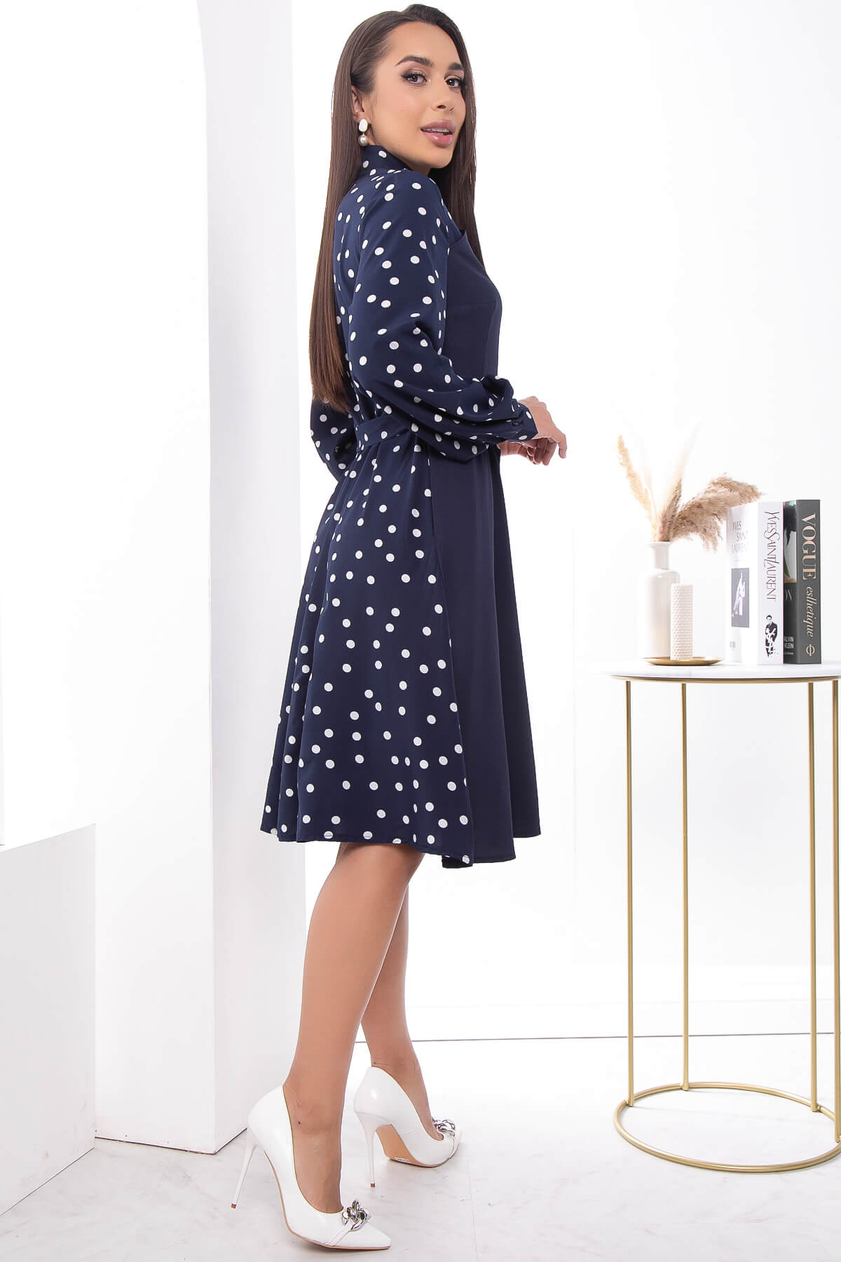 Платье "Королева красоты" (синее/горох) П7403