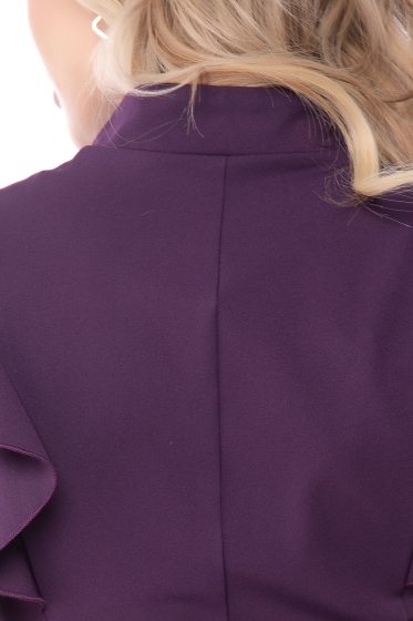 Элегантное платье-футляр в стильном оттенке. Платье прилегающего силуэта способно преобразить любой образ. Платье без рукава, на плечах стильные волны, сзади на юбке разрез-шлица. Изделие отлично подходит как для офисного стиля, так и для создания нарядного образа.