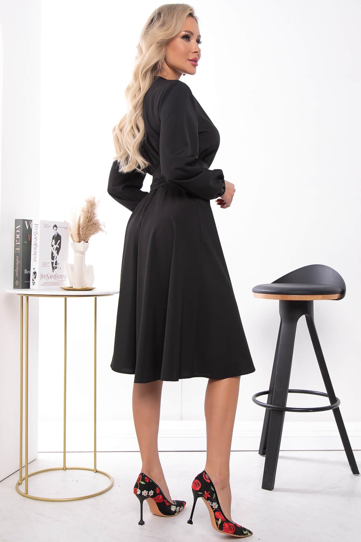 Женственное и невероятно милое платье, которое поможет в создании неповторимого образа. Красивый V-образный вырез с имитацией запаха подчеркивает зону декольте. Пышный длинный рукав, по низу на резинке. В комплект входит широкий пояс из основной ткани.